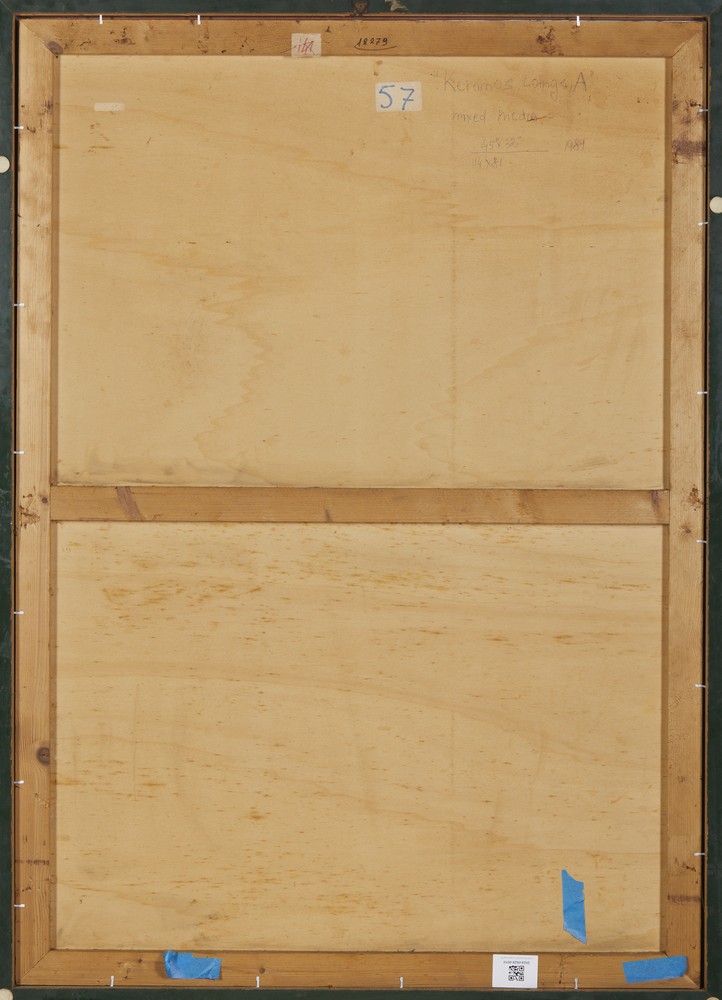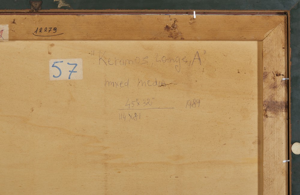 TILSON JOE (n. 1928) KERAMOS, LANGE, A, 1989. tecnica mista su carta applicata su tavola. Cm 81,00 x 114,00. firma e data