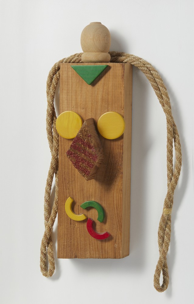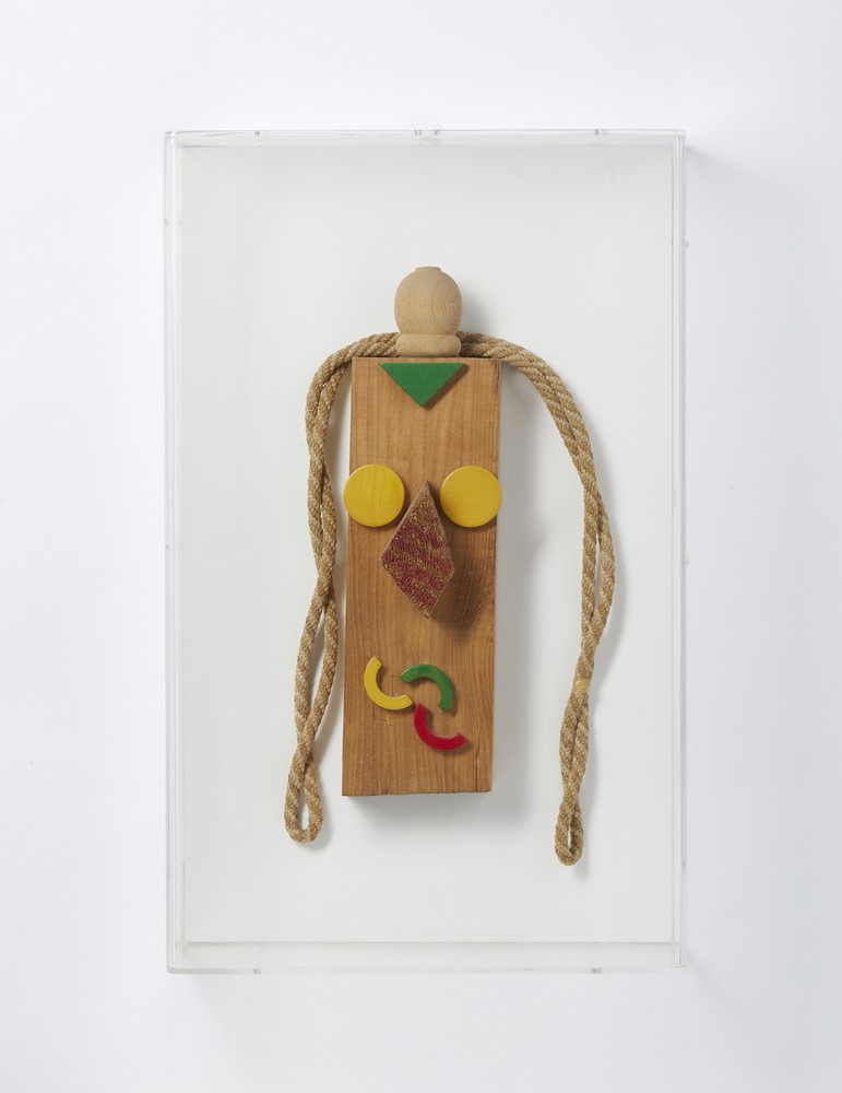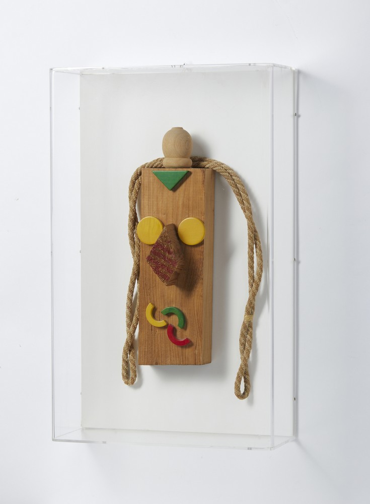 BAJ ENRICO (1924 - 2003) TORODICIELO, 1993. Collage e acrilico su legno. Cm 20,00 x 47,00 x 10,00. entro teca di plexiglass