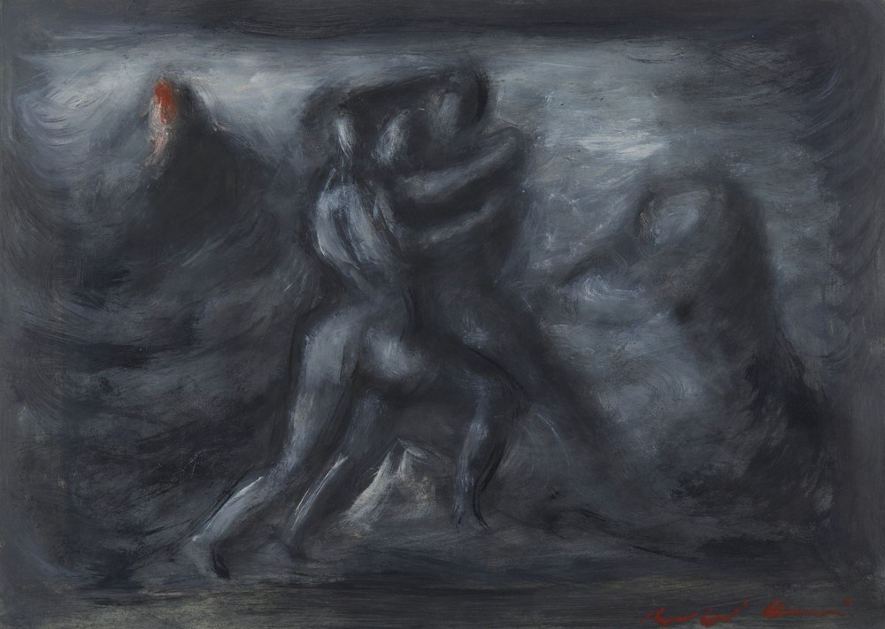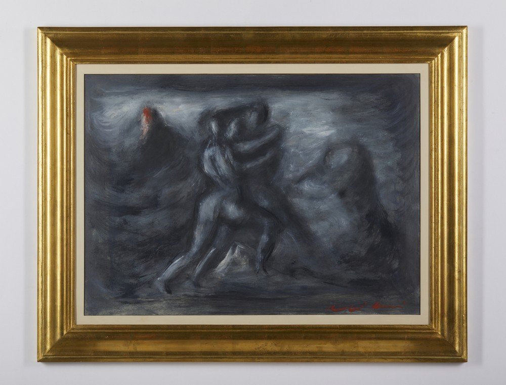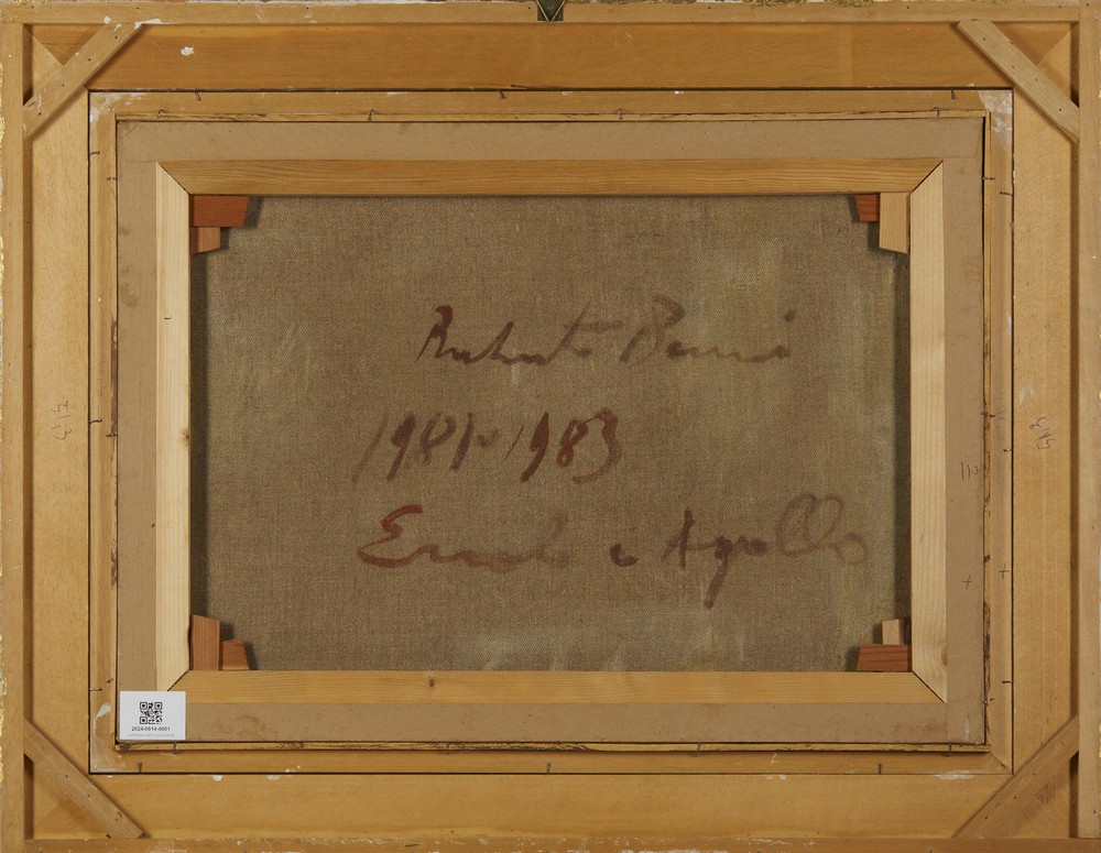BARNI ROBERTO (n. 1939) ERCOLE E APOLLO. olio su tela. Cm 70,00 x 50,00. firma