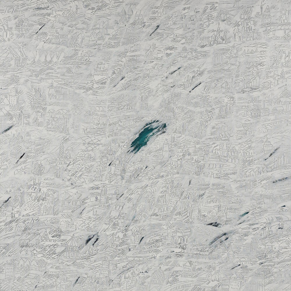 LA PIETRA UGO (n. 1938) LA CITTA' SCORRE AI MIEI PIEDI, 2017. acrilico su tela. Cm 100,00 x 100,00. firma e data