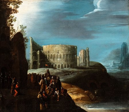 The beheading of a man in front of the Colosseum (The Martyrdom of San Restituto?) Oil on canvas cm. 54,5x62,5. Framed Private collection, Rome.