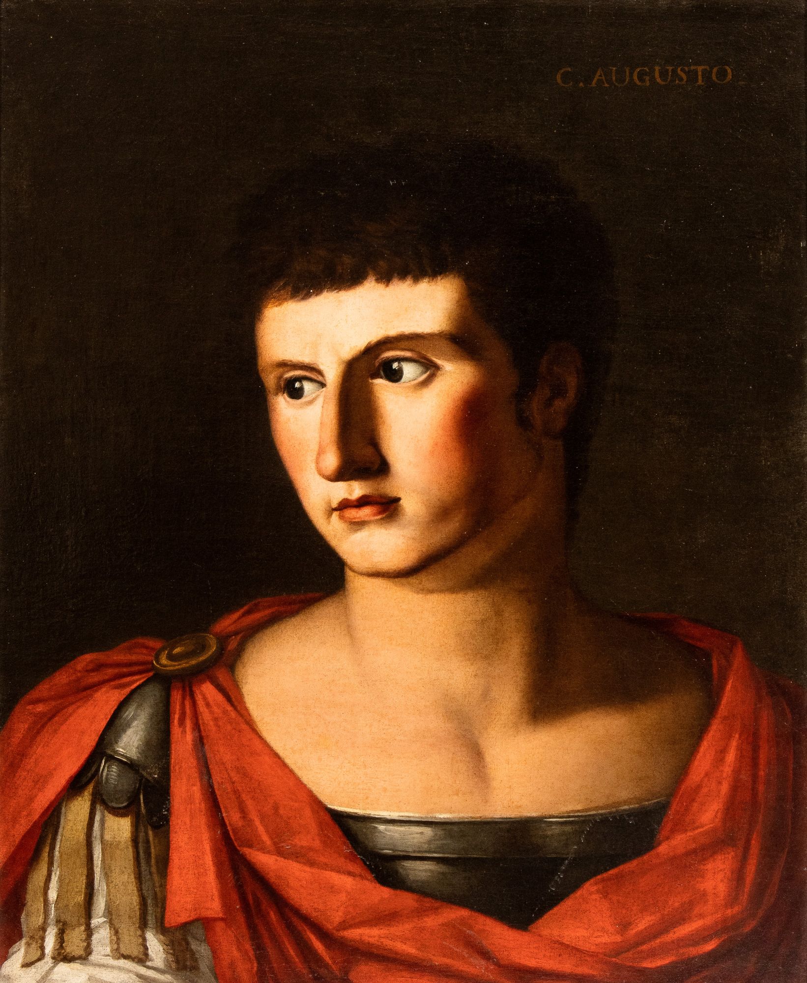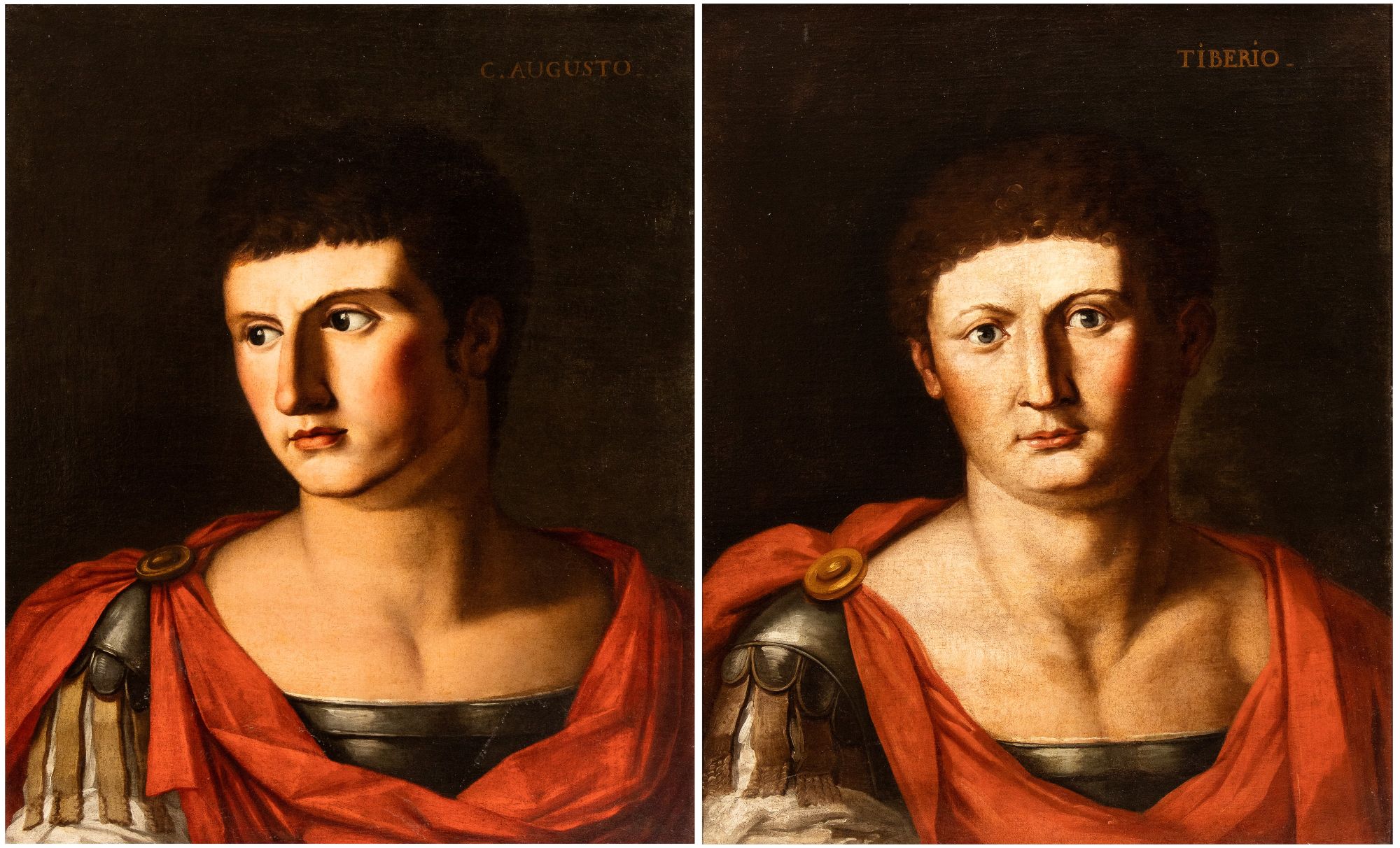 a) Portrait of Augustus; b) Portrait of Tiberius. Pair of paintings Oil on canvas cm. 116x90,5 each. Framed a) The painting is inscribed at the top right: ‘C. AUGUSTO’; b) The painting is inscribed at the top right: ‘TIBERIO’.