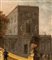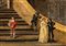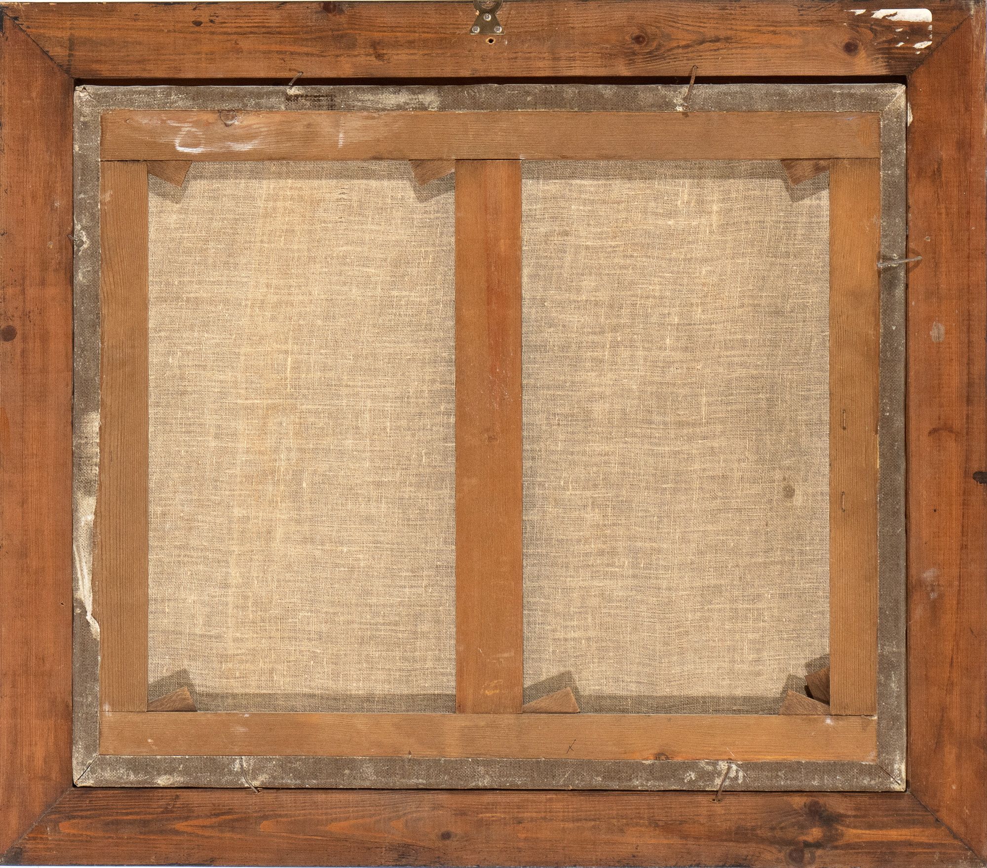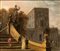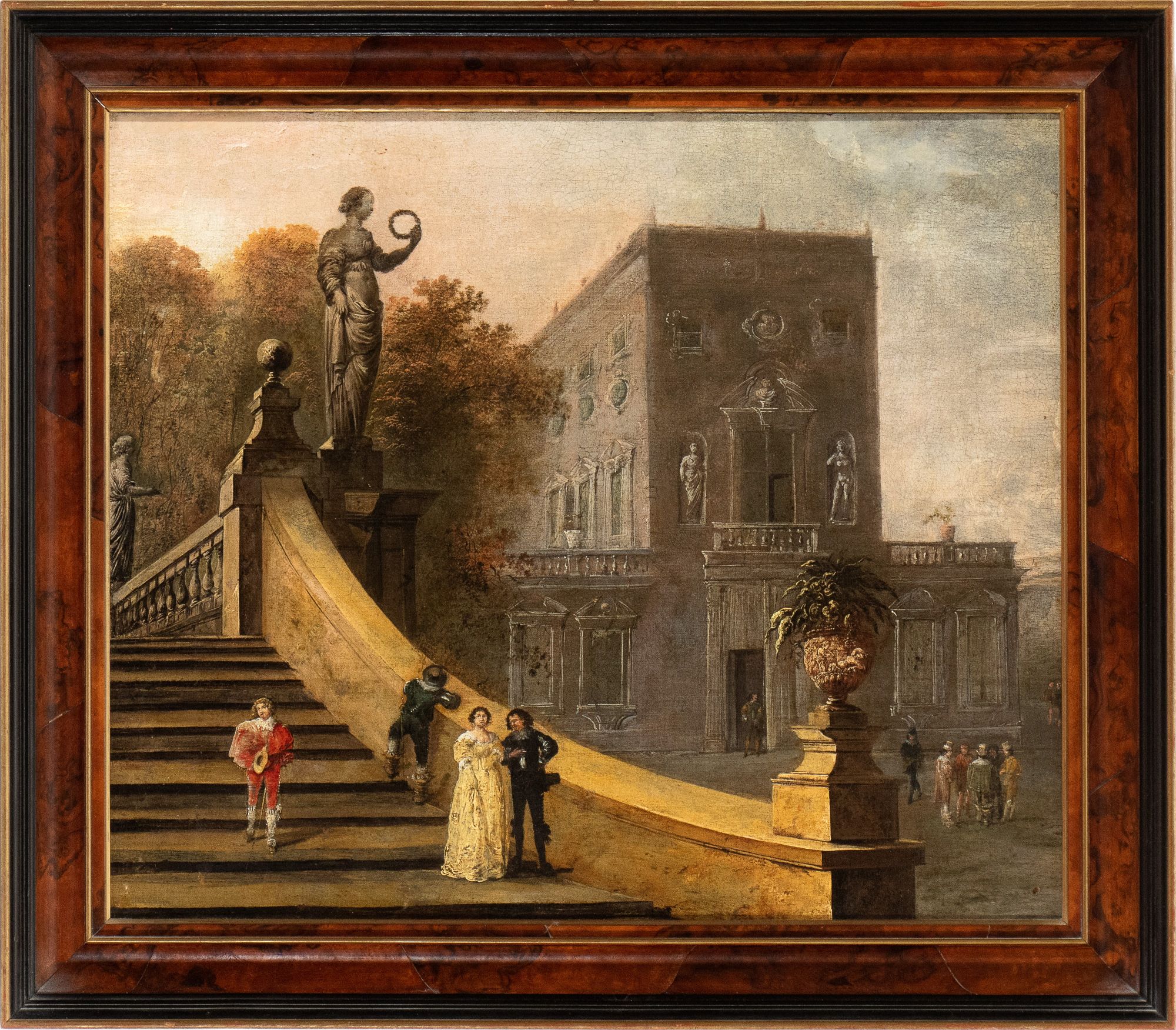 Gallant scene in the garden of a Roman villa Oil on canvas cm. 52x62. Framed