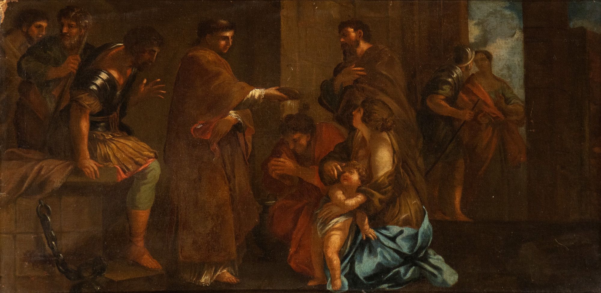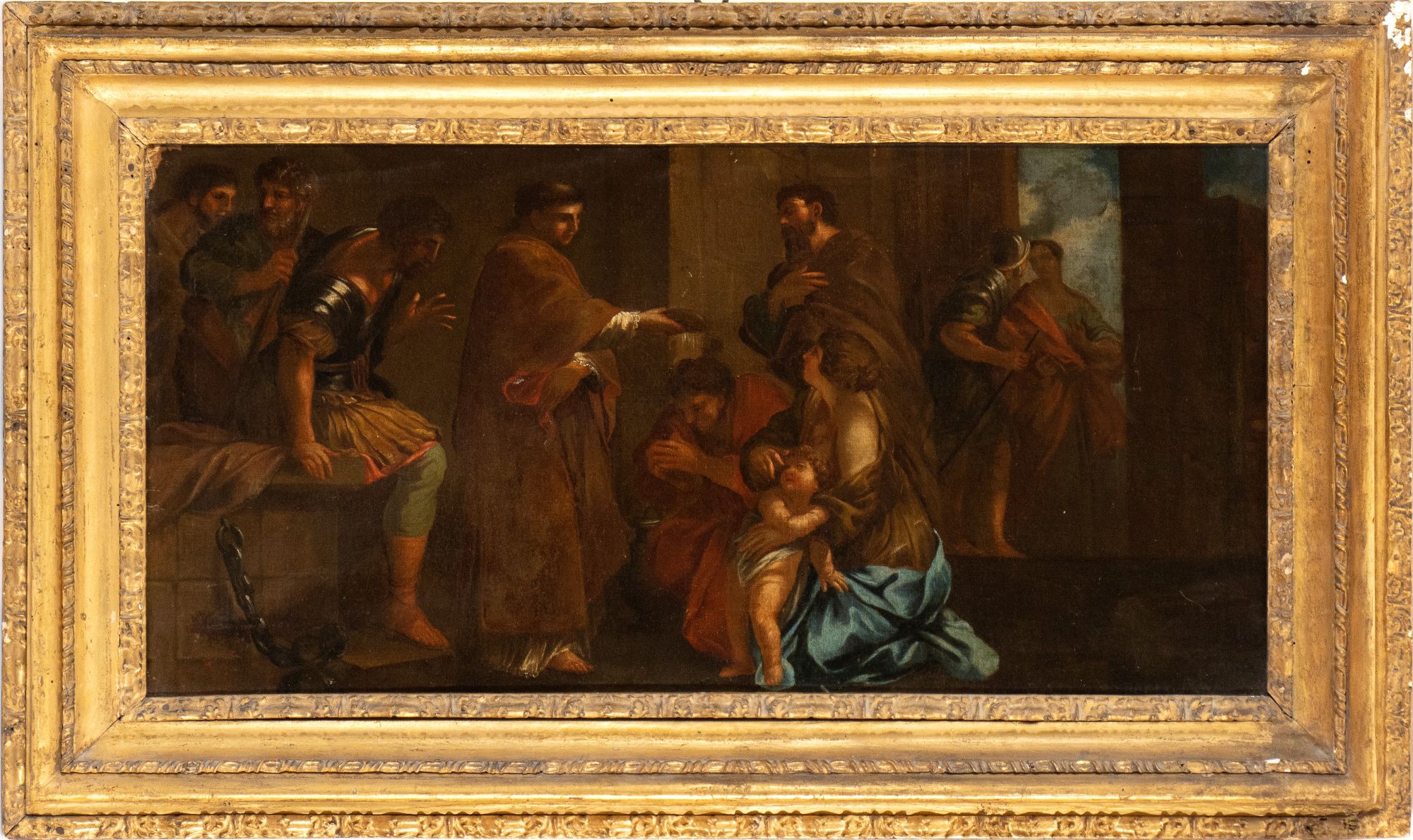 Baptism in a prison Oil on canvas cm. 37x74. Framed Private collection, Umbria.