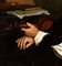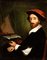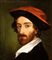 Portrait of musician with violin and red cap Oil on canvas cm, 28,5x24. Framed
