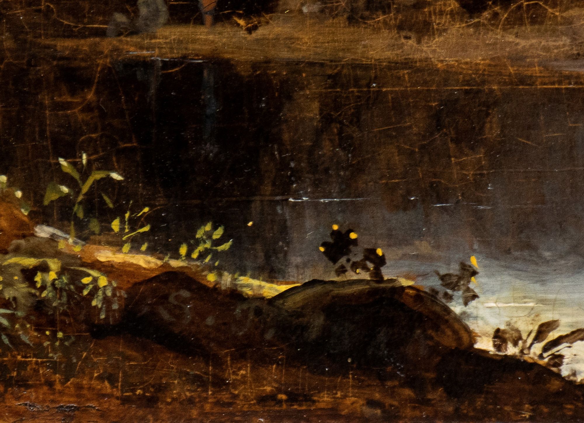 River landscape with fortress and two wayfarers Oil on panel cm. 19,2x25,5 The painting bears the initials and date in the bottom centre: "S.P. 1840"