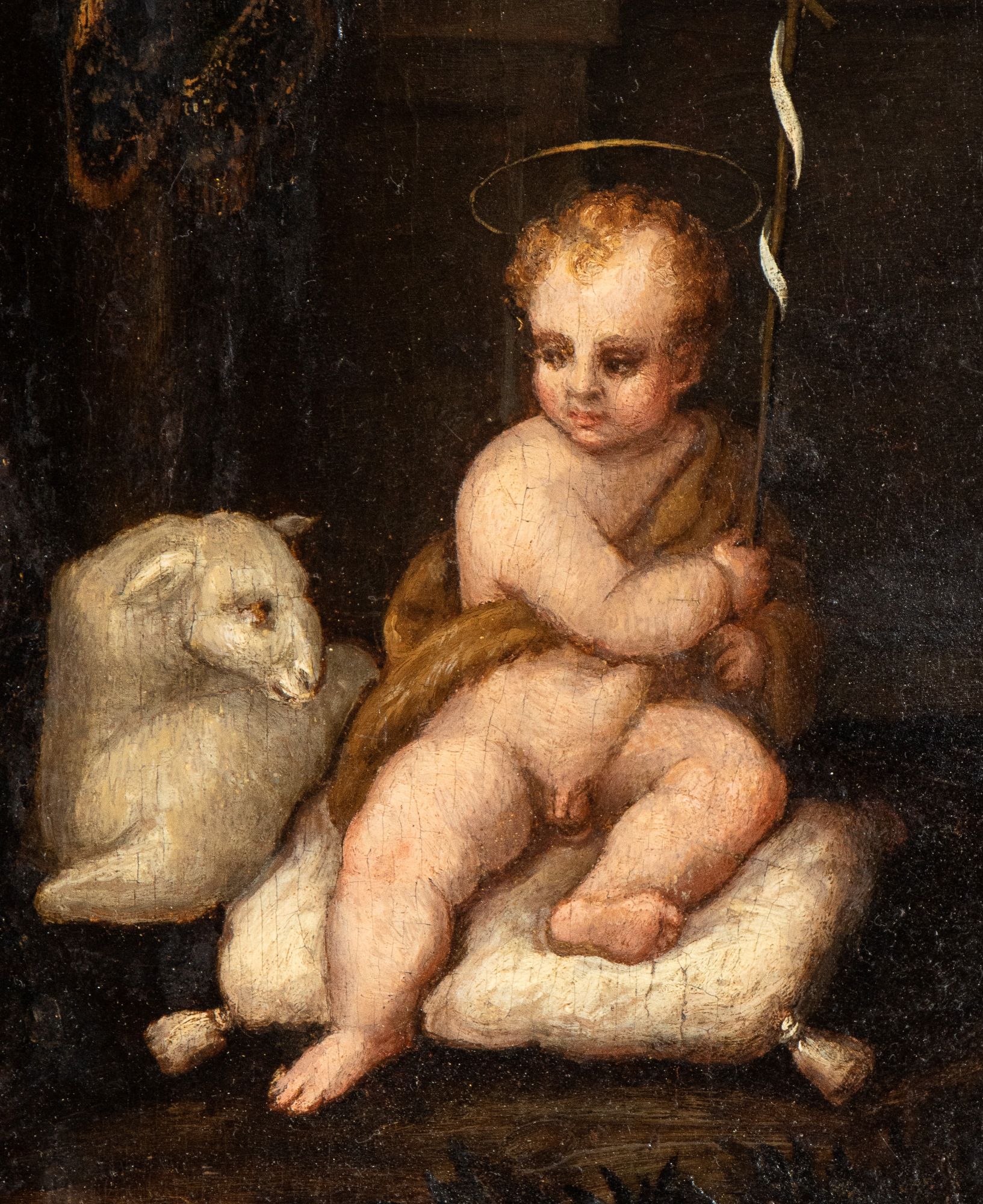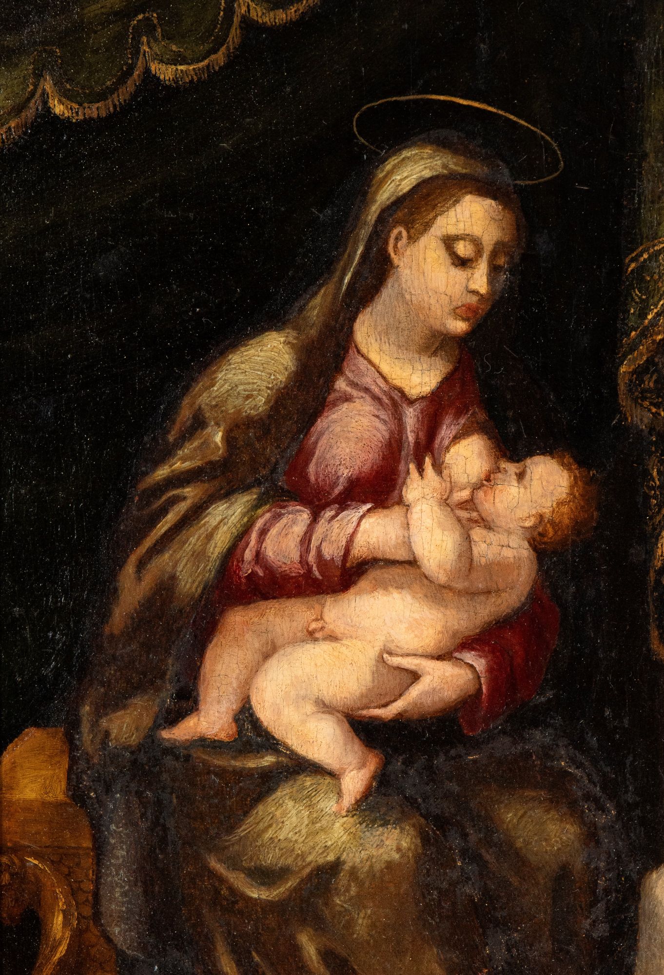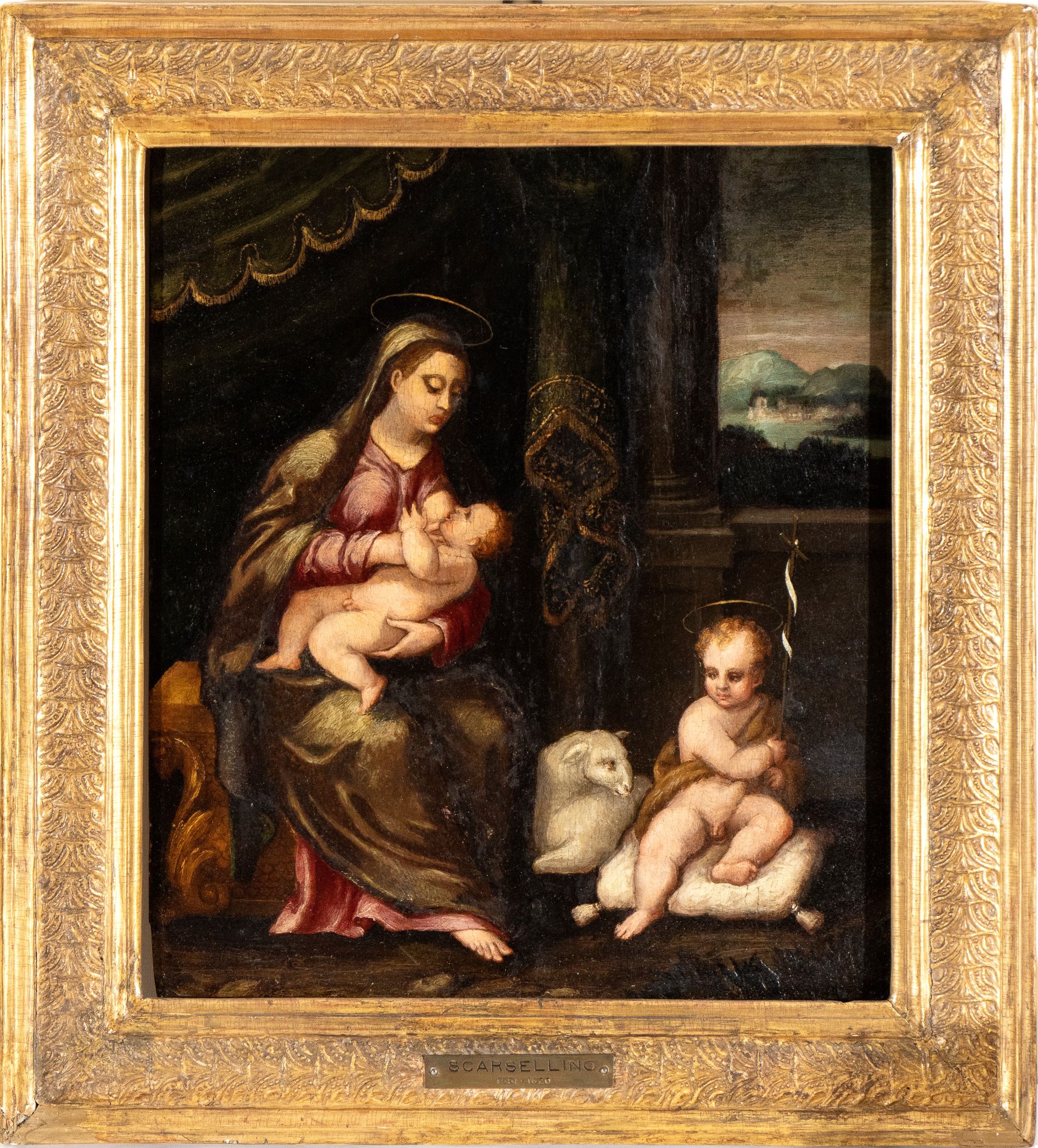 Madonna Lactans with Saint John Oil on panle cm. 41x35. Framed