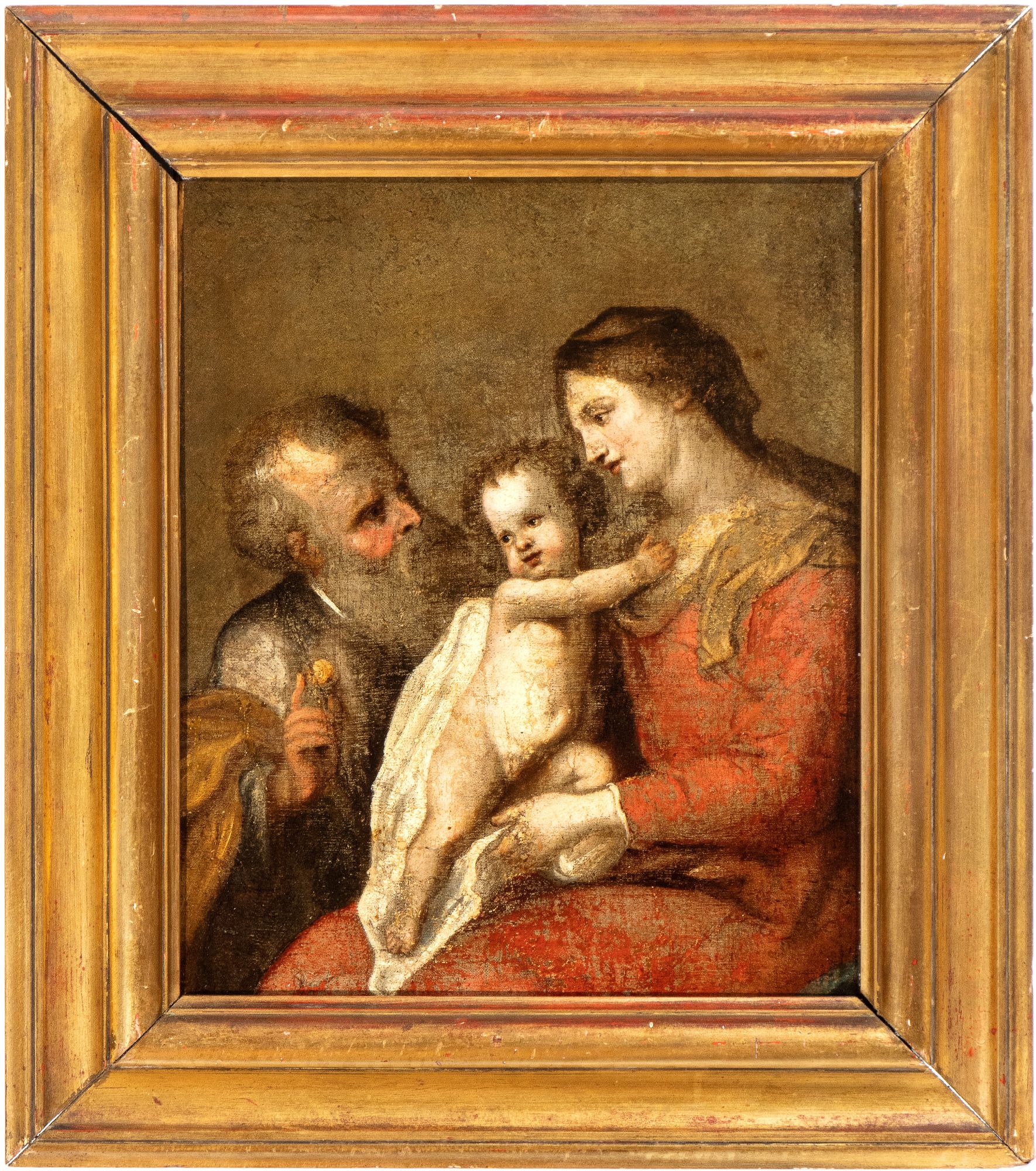 The Holy Family Oil on canvas cm. 49x40. Framed