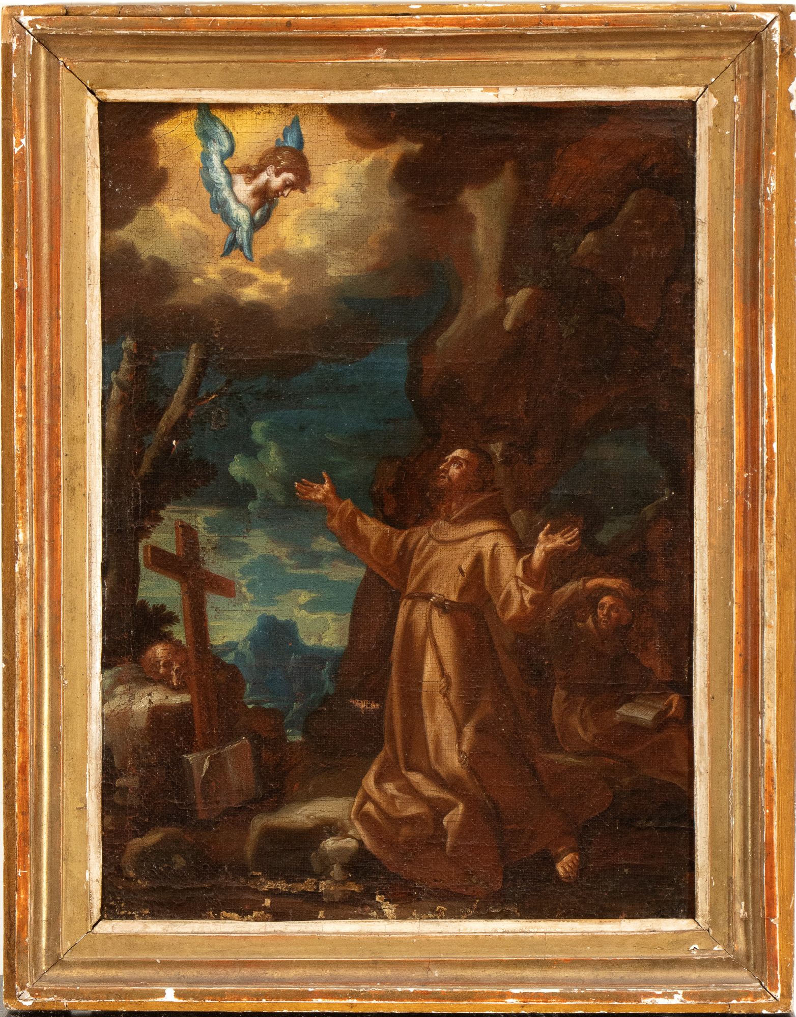Saint Francis receives the stigmata Oil on canvas cm. 40,5x30. Framed