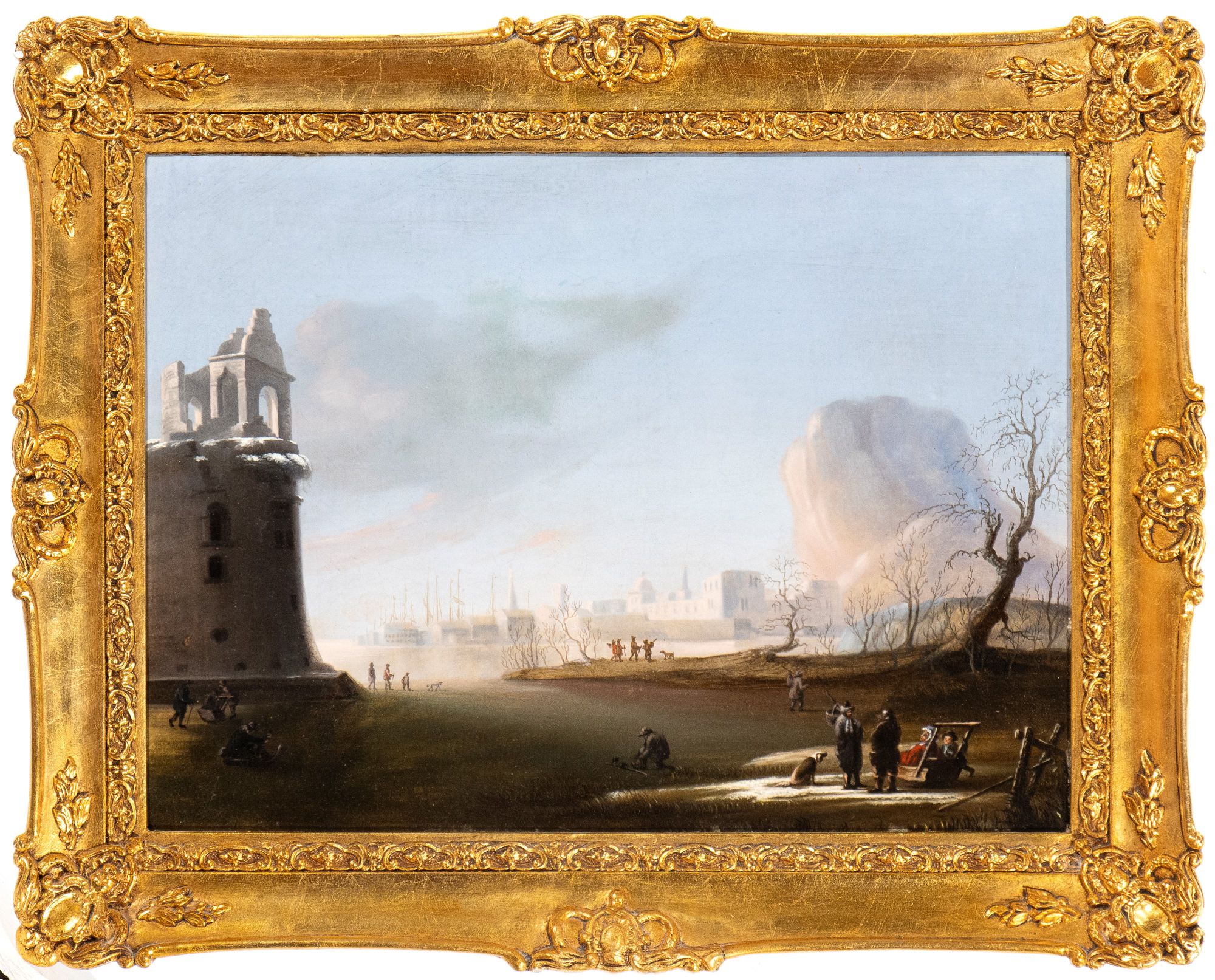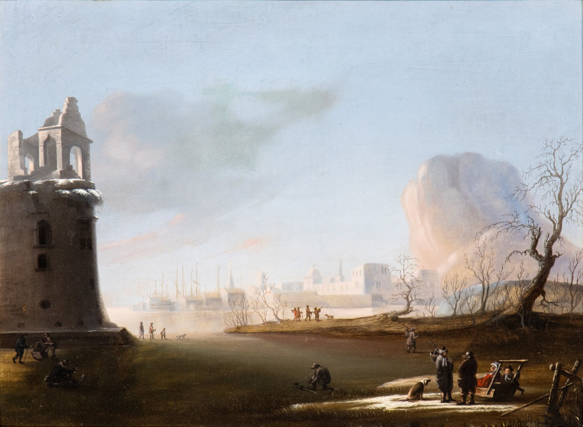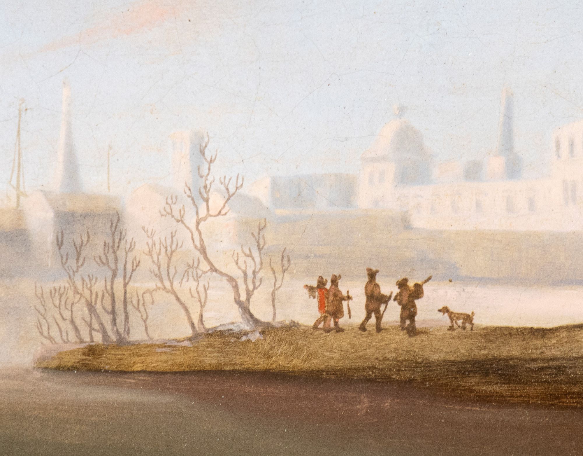 Winter landscape with frozen lake and figures Oil on canvas cm. 38,5x53. Framed Private collection, Abruzzo.