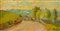 Rutilio Muti (Vicchio di Mugello (Fi) 1904 - 1995) GREGGE CON PASTORE, 1933 Olio su tavola, cm. 21x39 Firmato in basso a destra. Sul verso: firma e data.