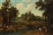 Landscape with stream, village and figures Oil on panel cm. 17,5x26. Framed Private collection, Lazio.