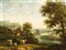 Paesaggio con fiume, cittadella sullo sfondo, armenti e figura