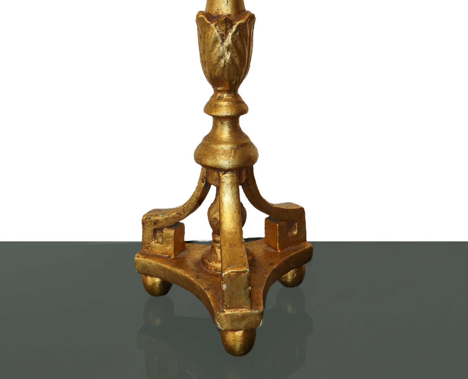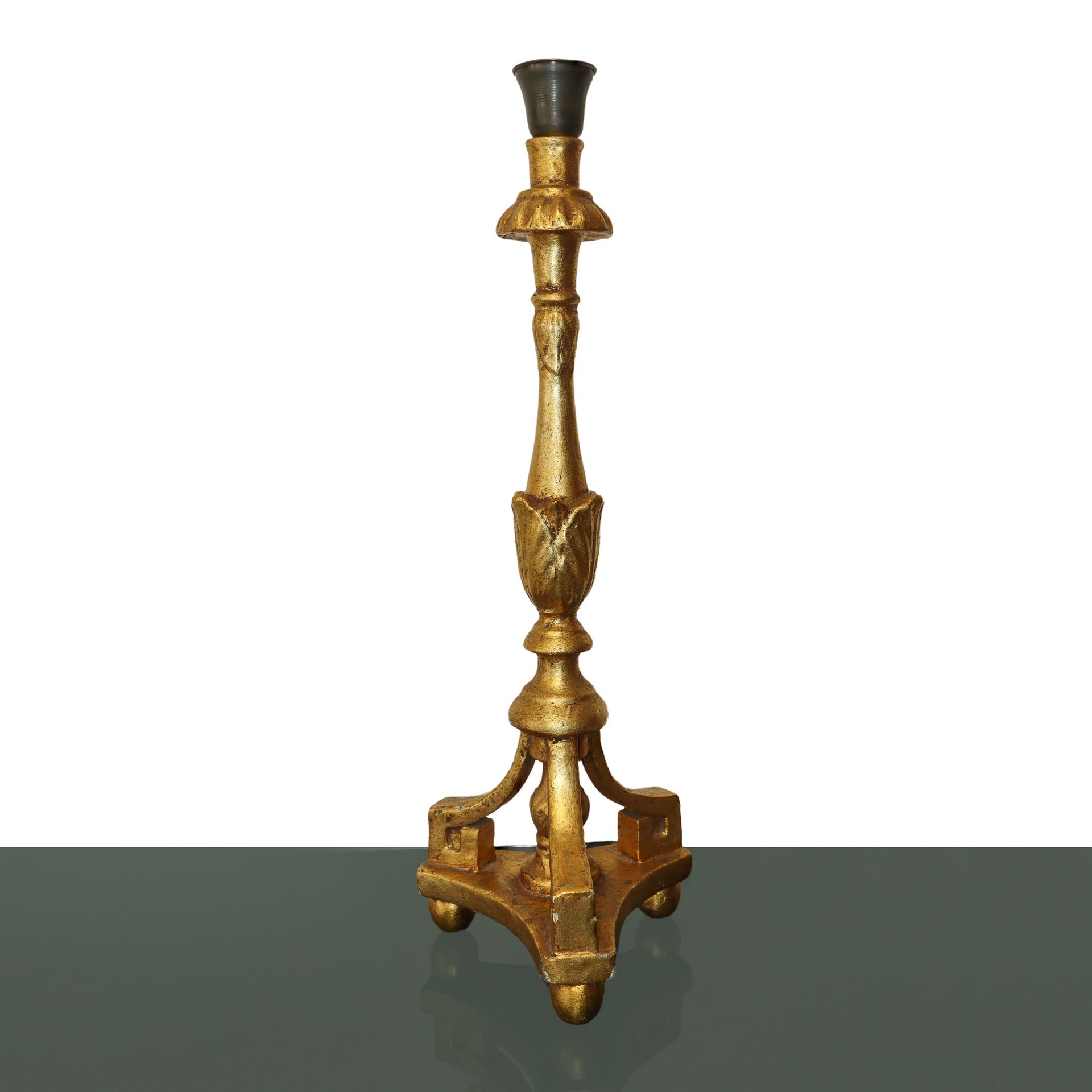 Coppia di candelieri in legno dorato, primi 19° secolo