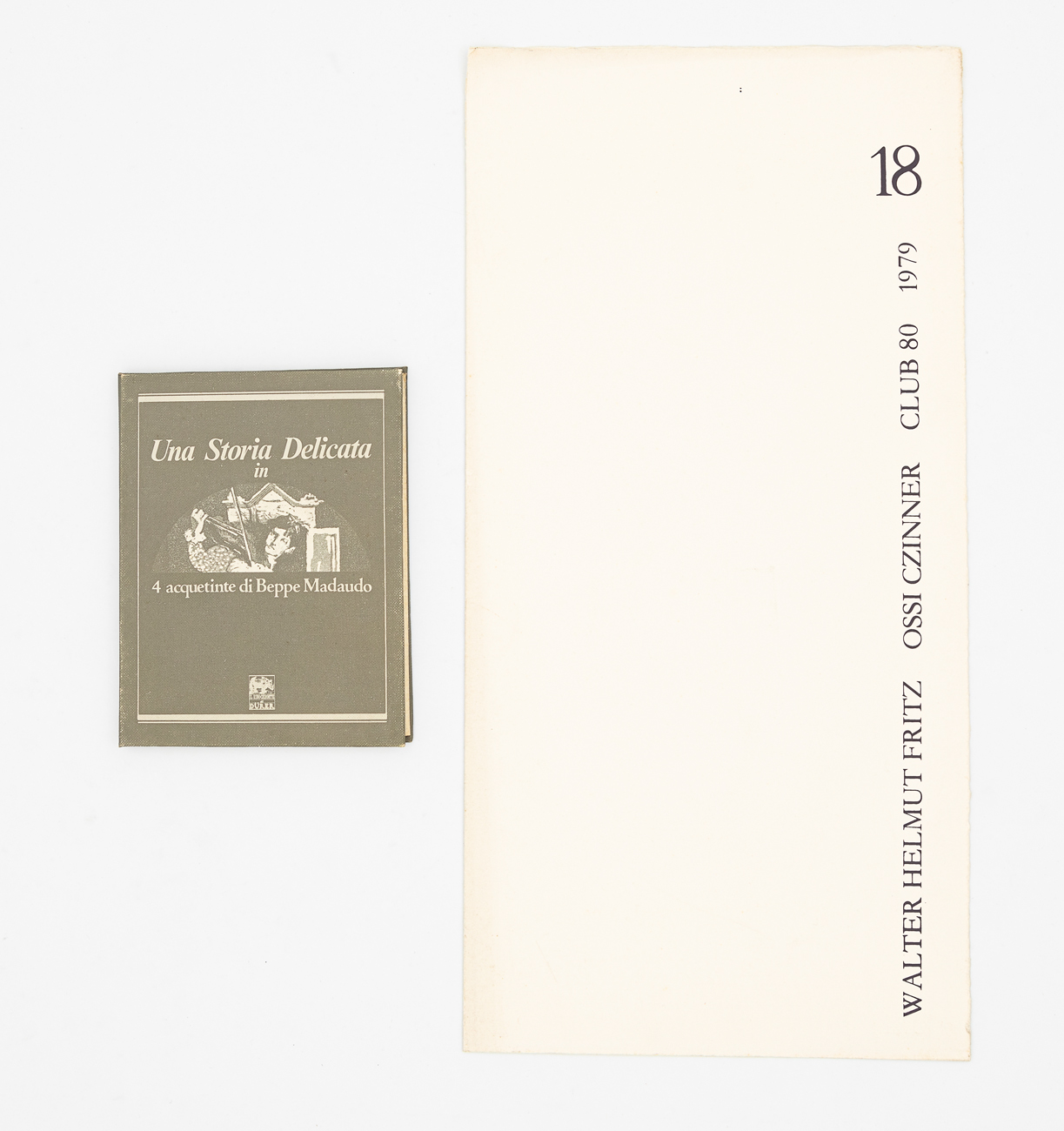 Pieghevole contenente testo di Walter Helmut Fritz e acquaforte di Ossi Czinner, recante firma e numerazione (Esemplare P.A.) a matita al fronte e timbro a secco dello Stampatore