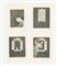 Cartella contenente 4 acquetinte di Giuseppe Madaudo, ciascuna recante firma e numerazione (Esemplari XVII/XX) a matita al fronte e timbro a secco dello Stampatore