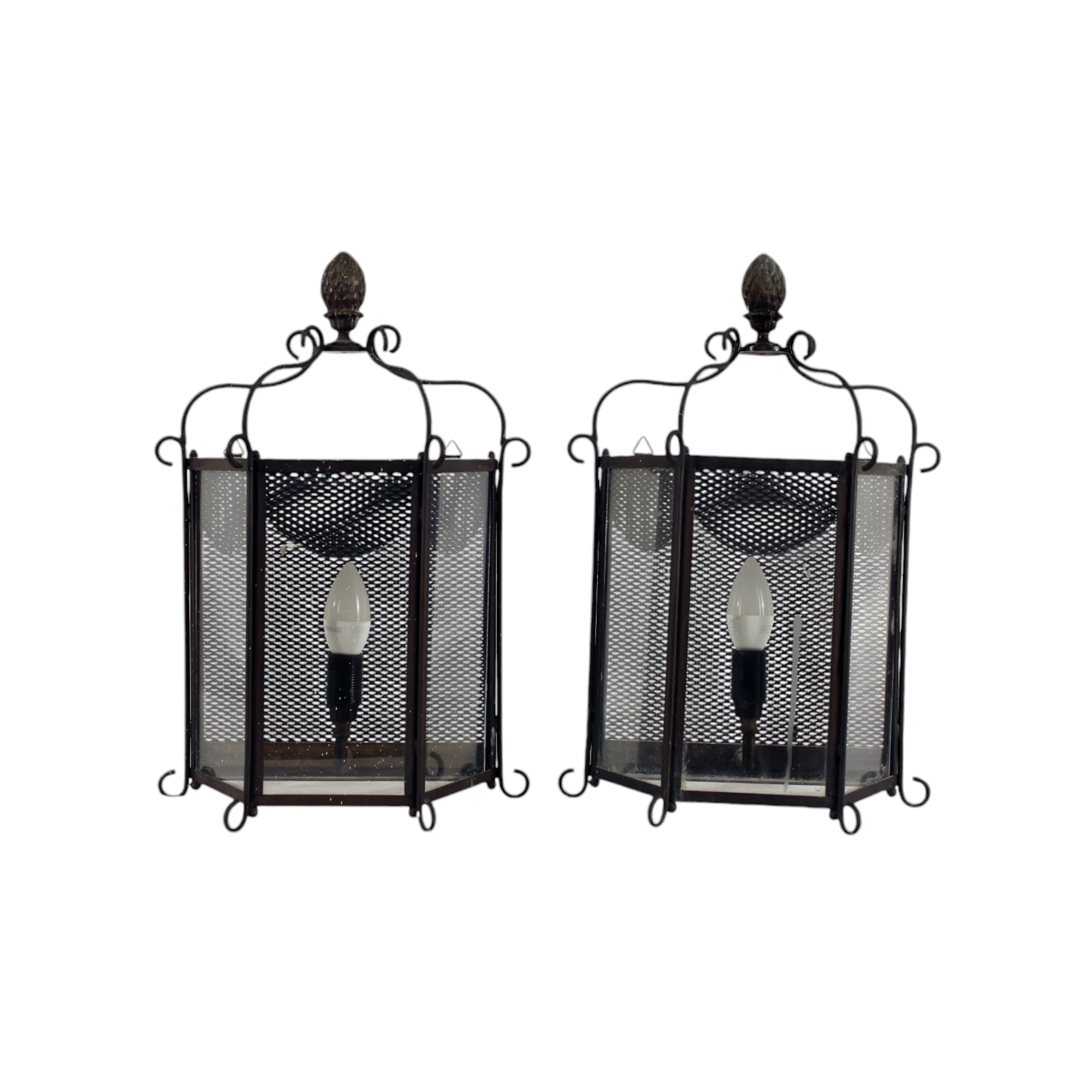 N.2 APPLIQUES A LANTERNA in ferro battuto ad una luce XX sec XX sec