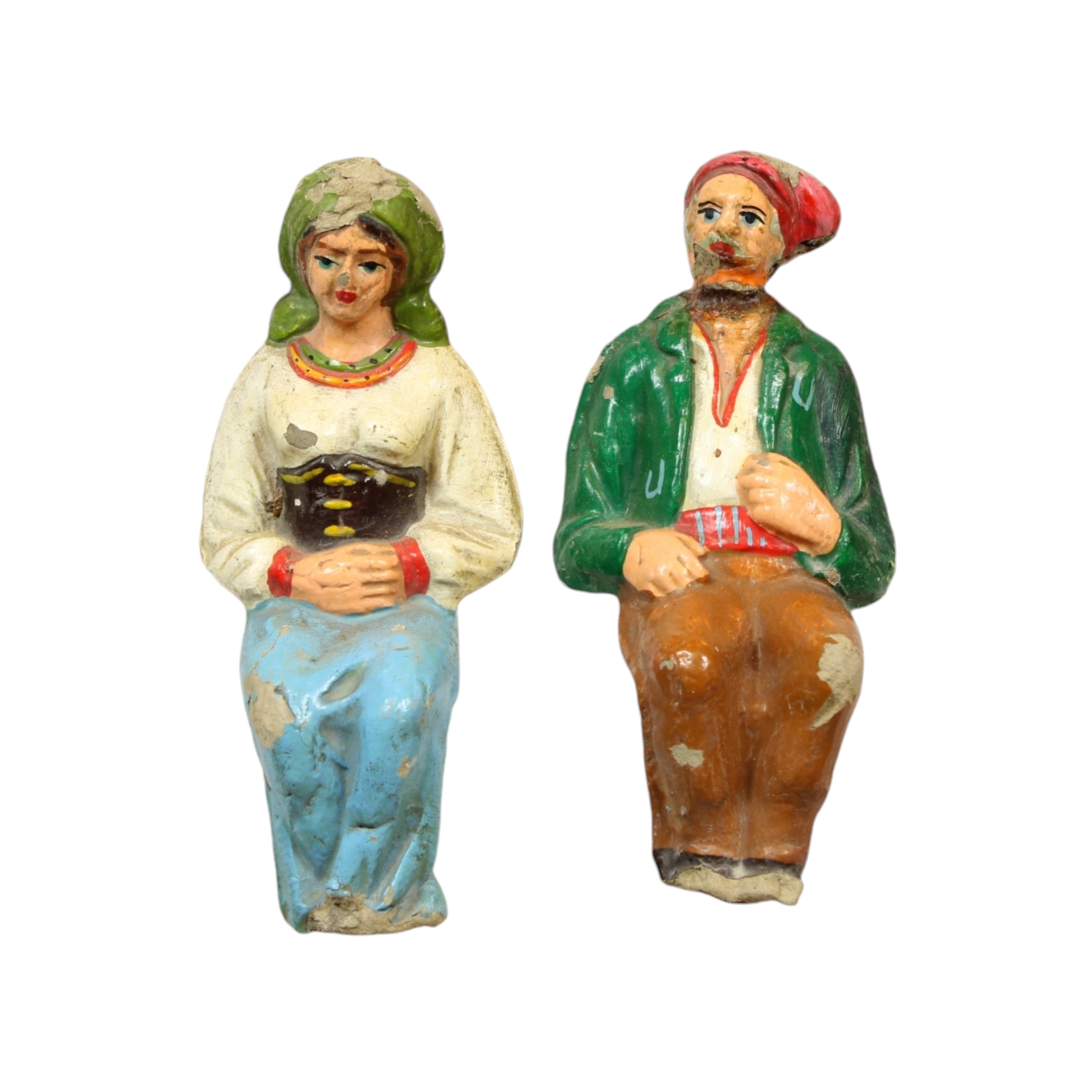 LOTTO COMPOSTO DA 5 personaggi in cartapesta dipinta, maestranze siciliane XX secolo maestranze siciliane XX secolo h cm 33/h cm 17