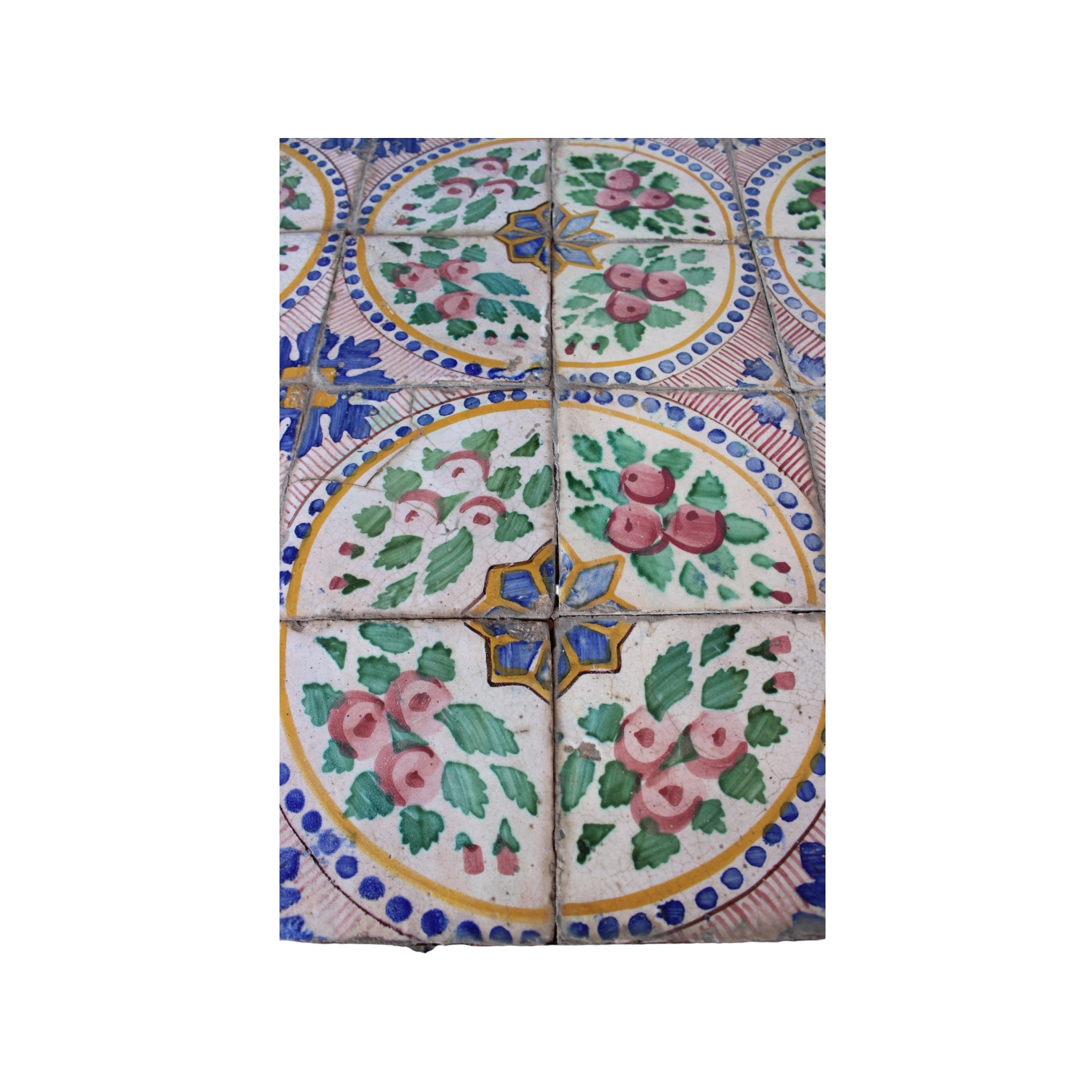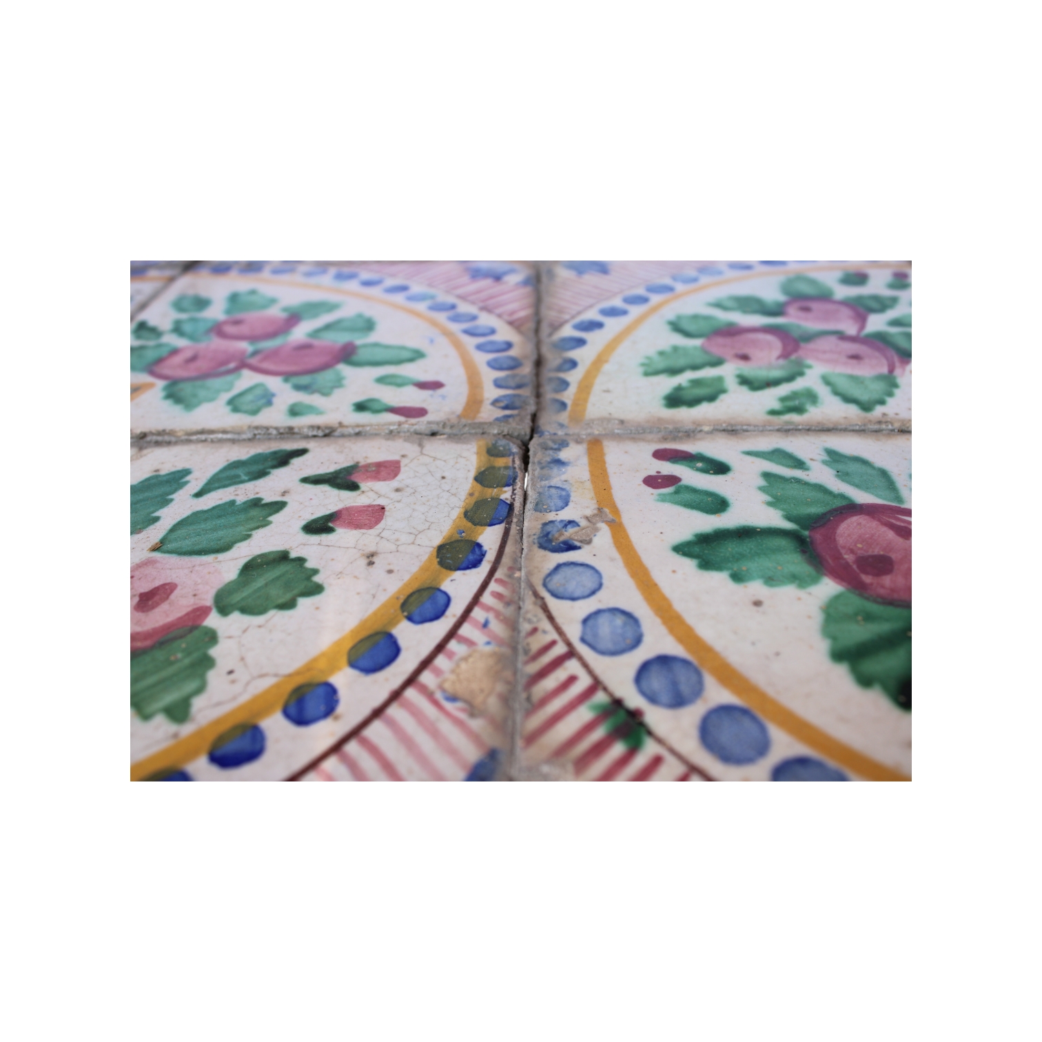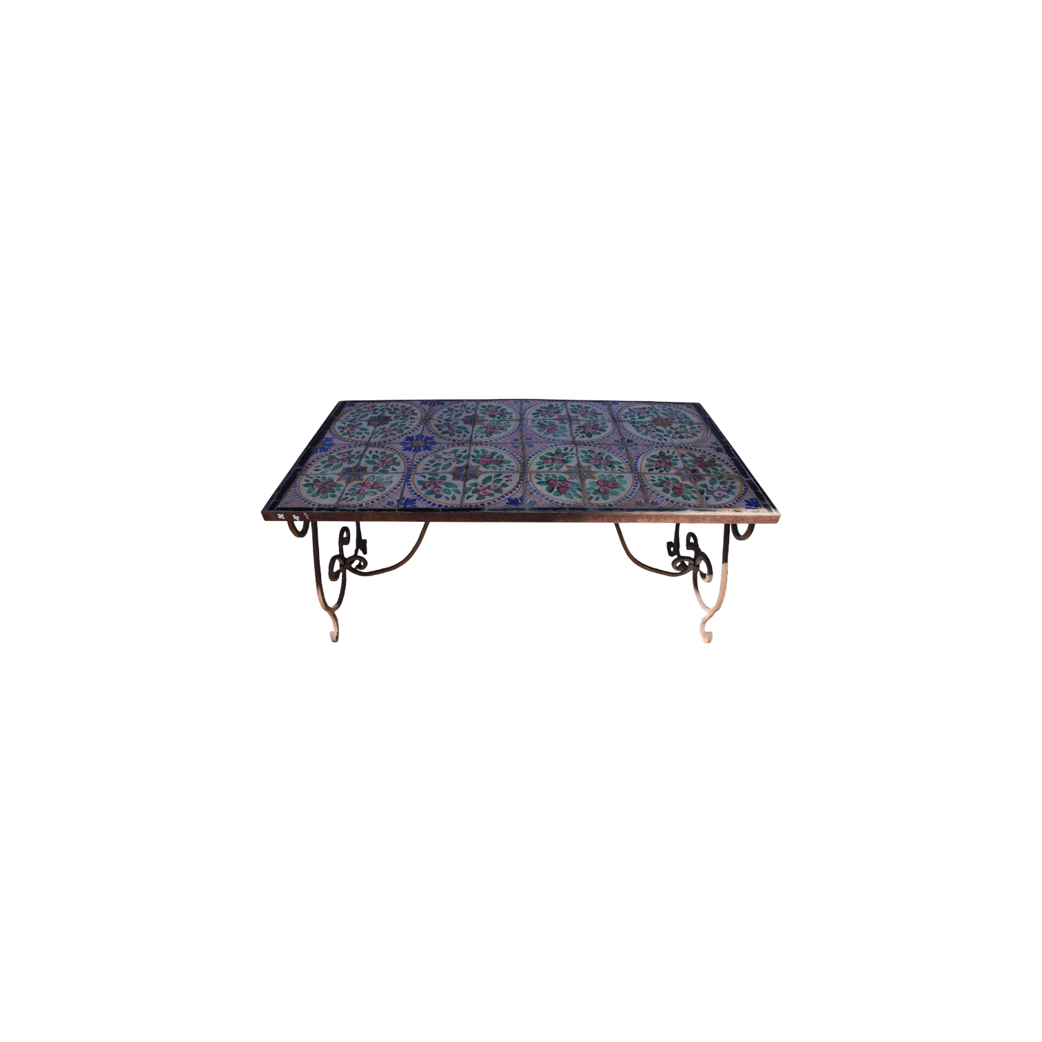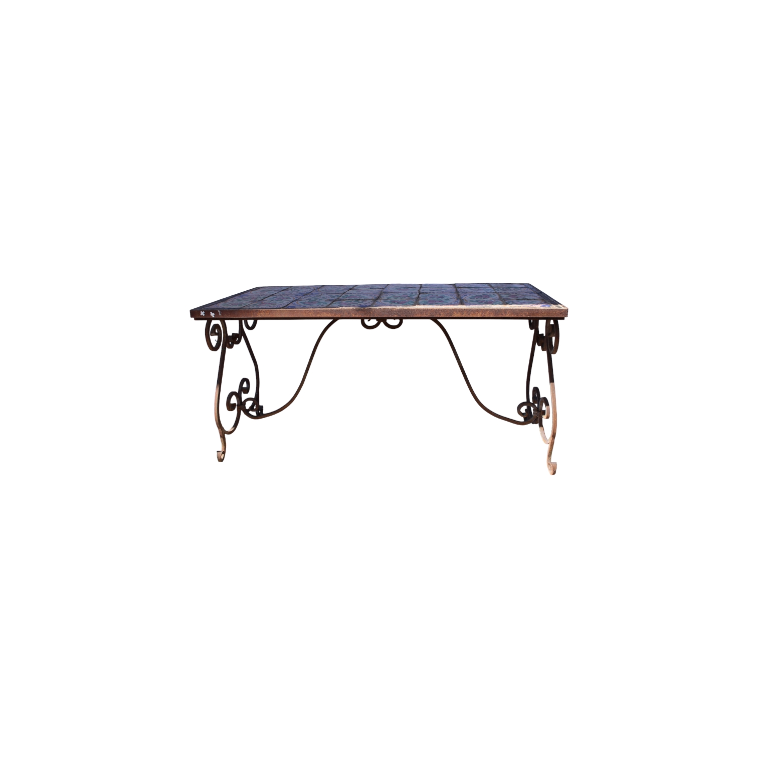 TAVOLO con base in fusione di ghisa e piano composto da mattonelle in maiolica dipinta maestranze siciliane XIX/XX secolo maestranze siciliane XIX/XX secolo h cm 73 x 175 x 108