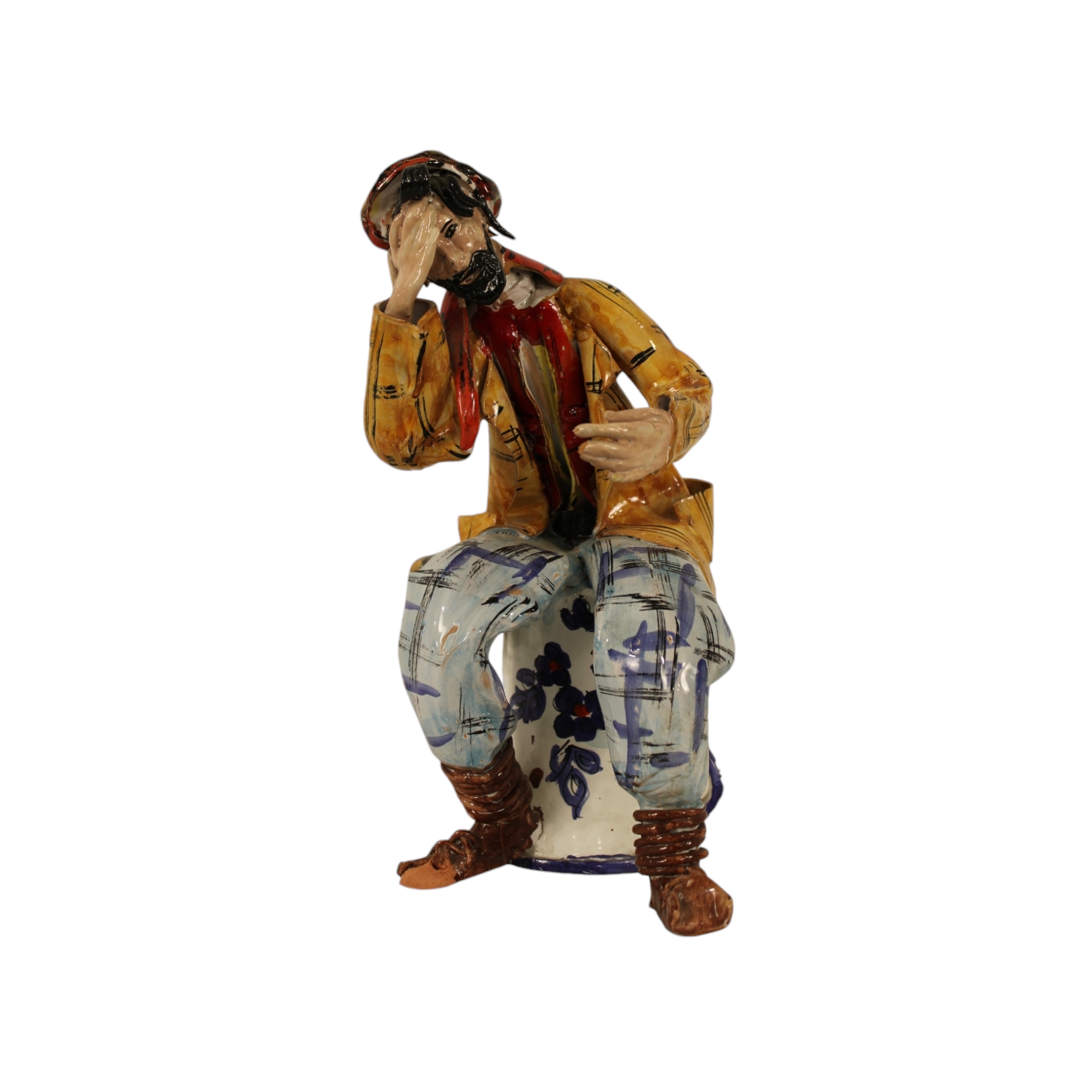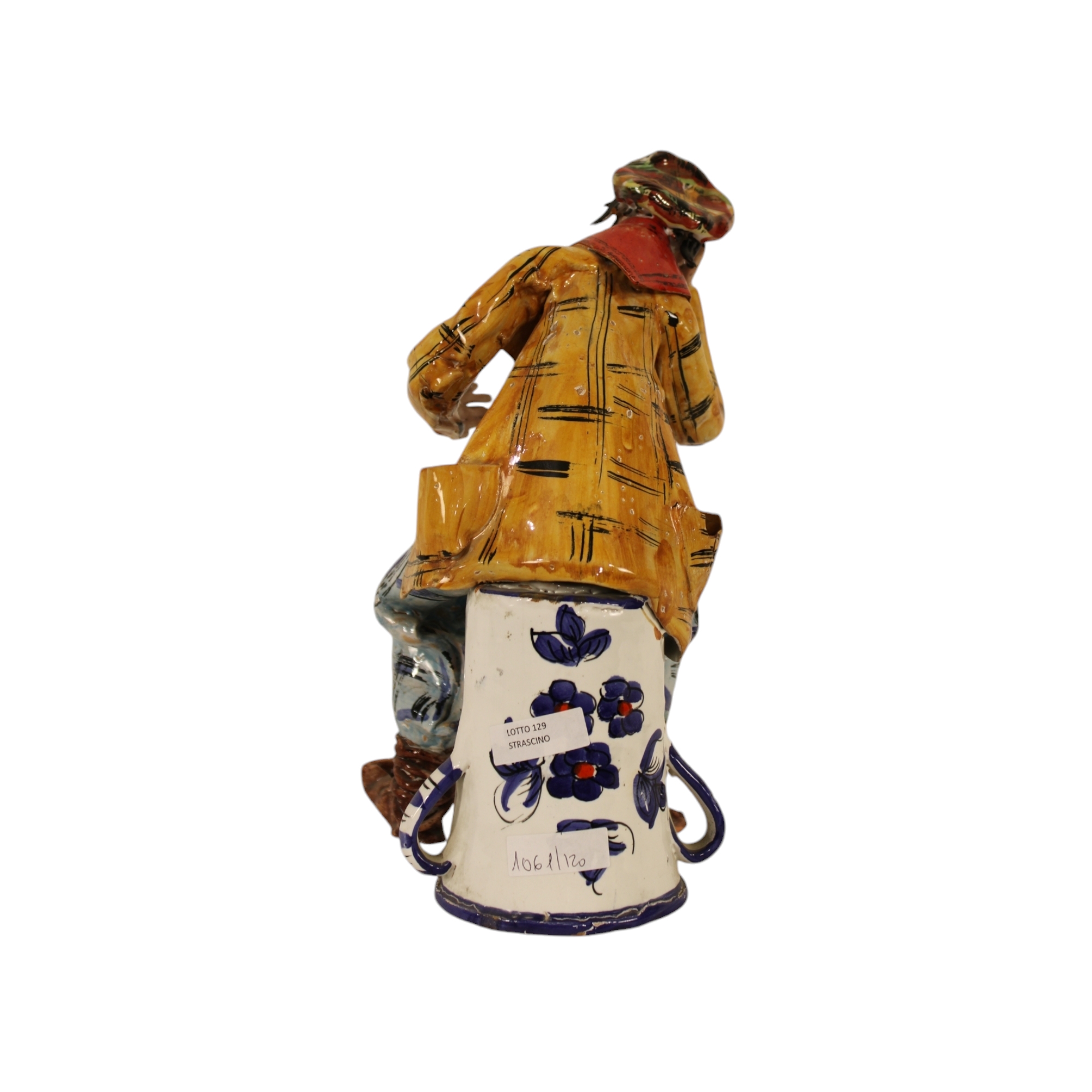 GRUPPO SCULTOREO in maiolica policroma raffigurante pensatore, piccole sbeccature e parti mancanti maestranze siciliane XX secolo maestranze siciliane XX secolo h cm 30 x 15 x 18