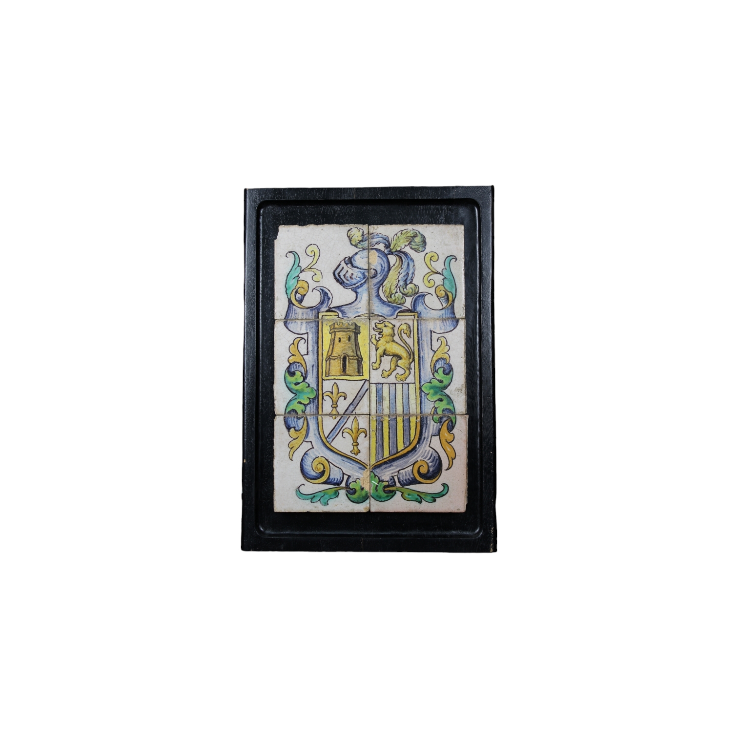 PLACCA composta da sei mattonelle in maiolica policroma raffigurante stemma araldico maestranze siciliane XIX secolo maestranze siciliane XIX secolo h cm 41 x 27