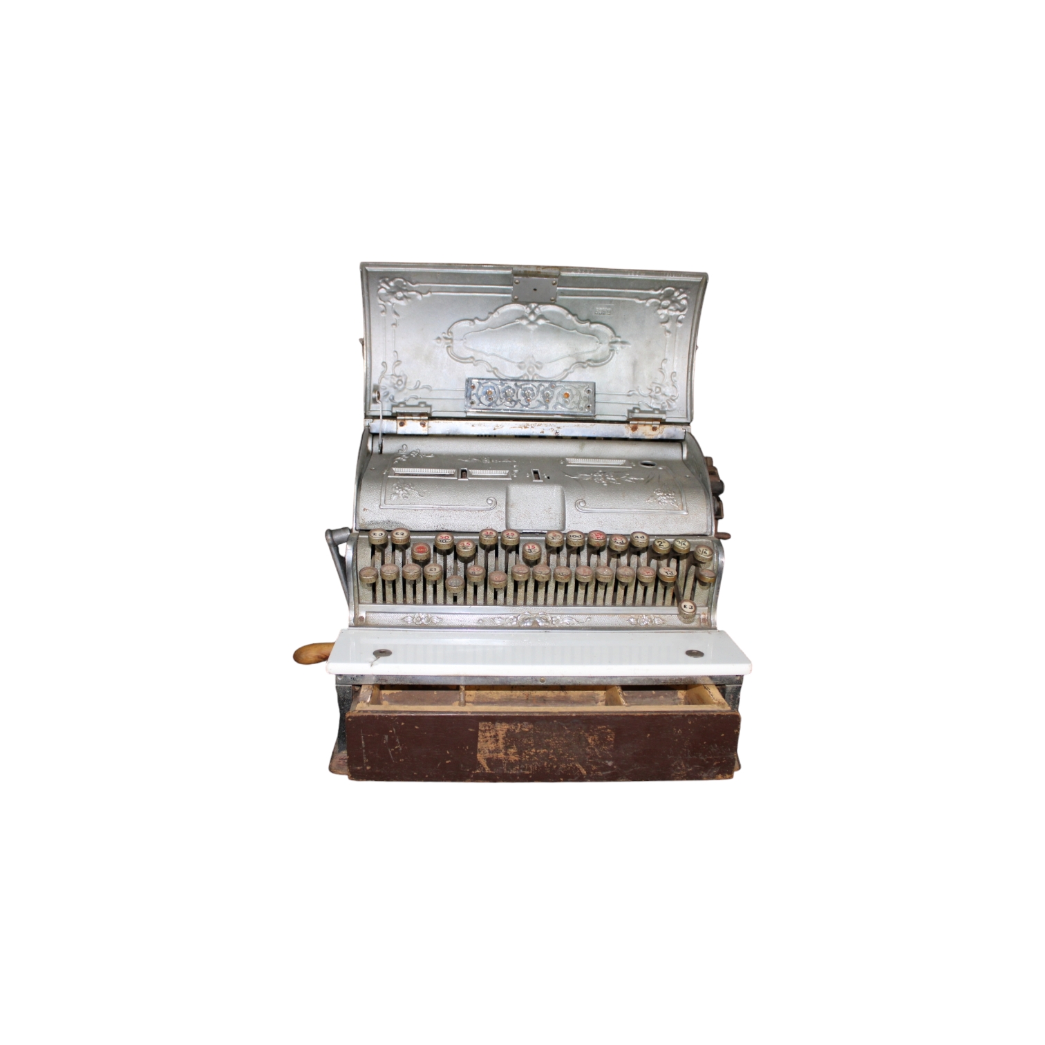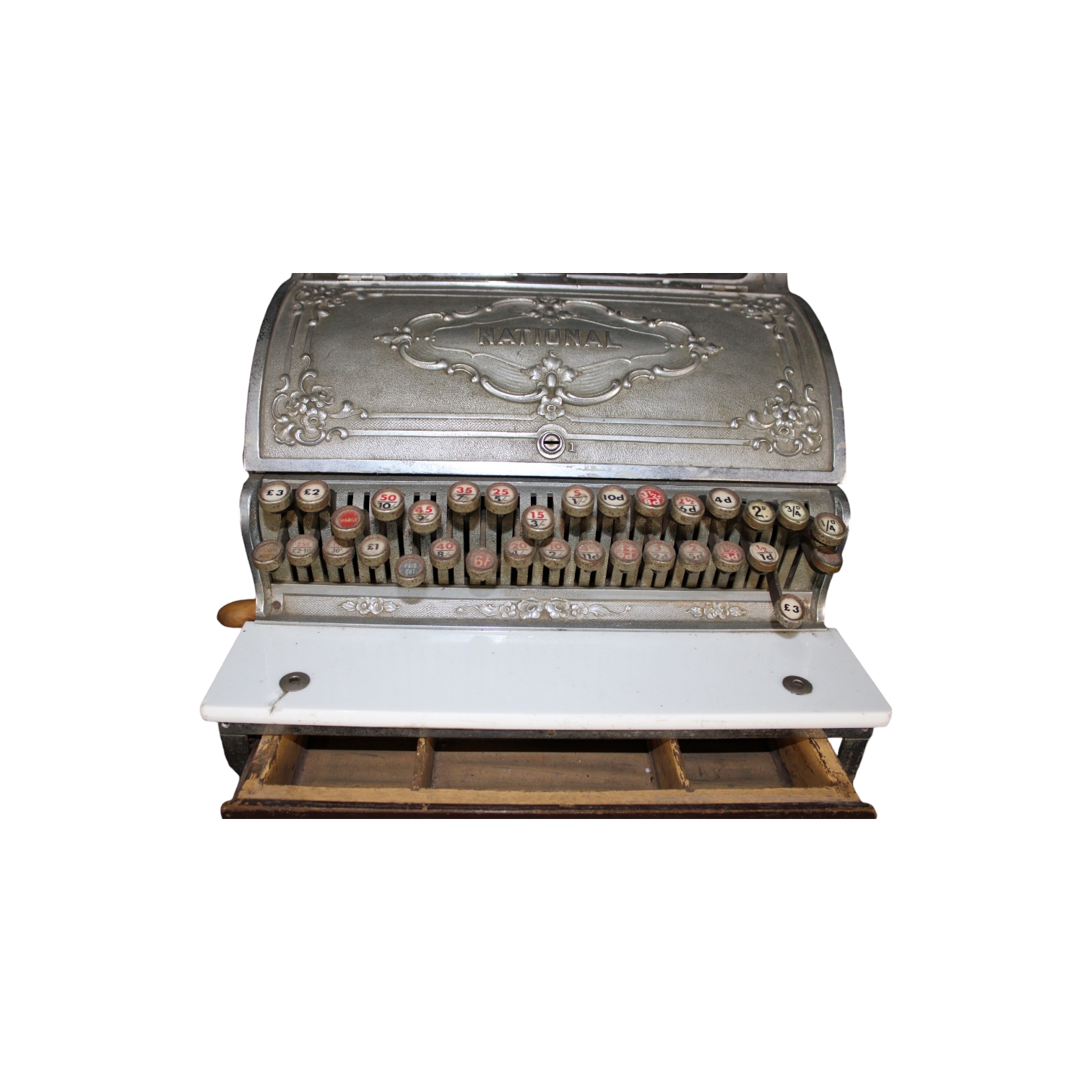 REGISTRATORE DI CASSA STEVENSONS NATIONAL DA REVISIONARE USURE DEL TEMPO MANCATE DI COPERCHIO LATERALE 1930 CIRCA 1930 CIRCA h cm 44 x 42 x 41