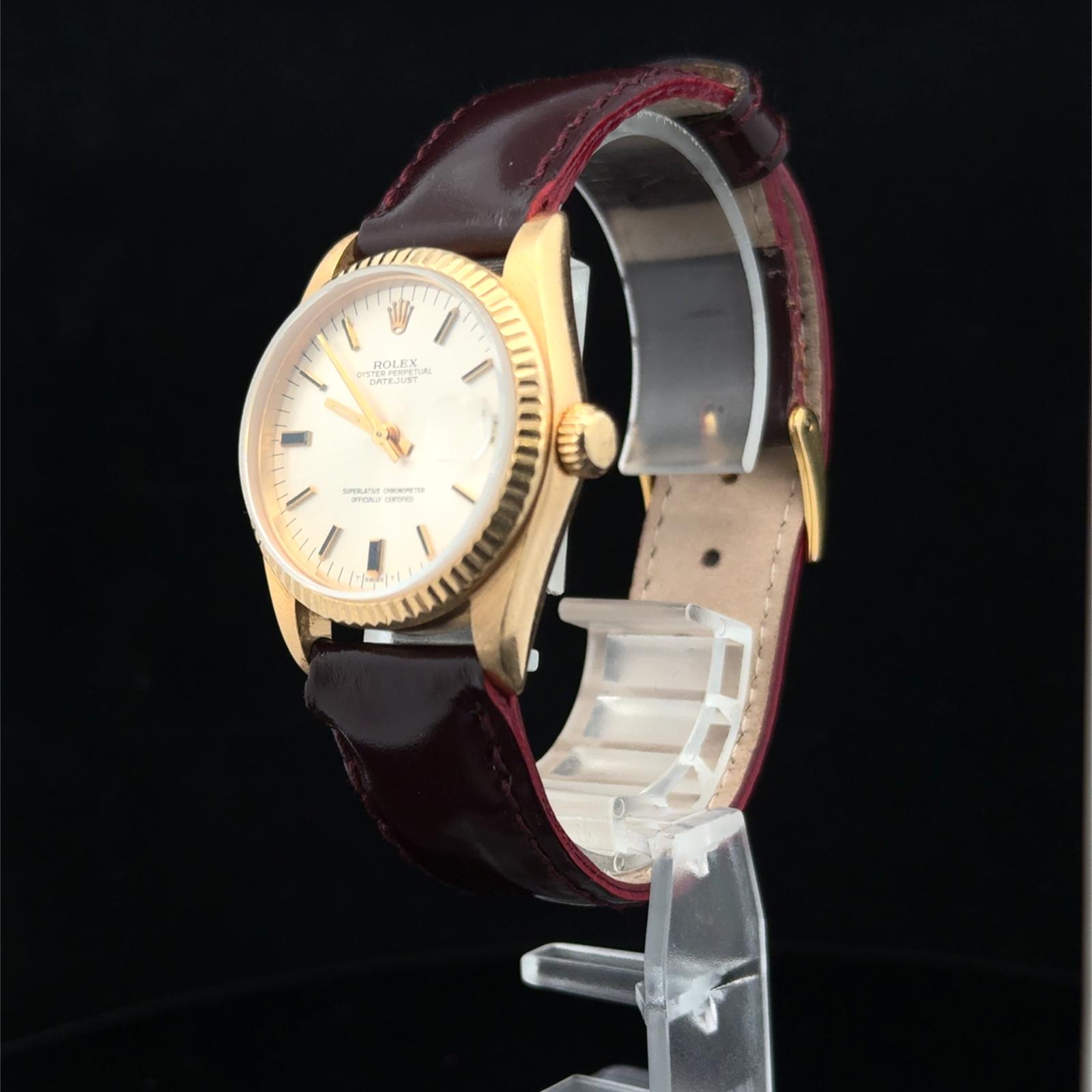 Rolex Datejust 31mm 68278 Materiale: Oro giallo 18 carati Automatico 31 mm Vetro: Zaffiro Colore quadrante: pelle marrone Chiusura: Fibbia Materiale della chiusura: Oro giallo Condizioni: Molto buono Garanzia del nostro negozio di 12 mesi