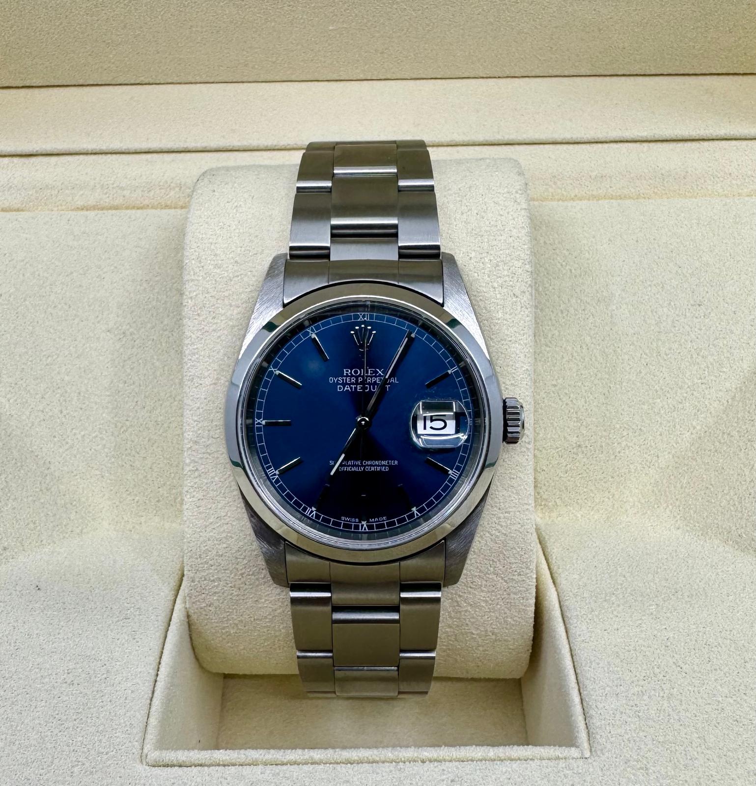Marca Rolex Modello (Orologio) Datejust 36 Numero di referenza 16200 Carica Automatico Materiale della cassa Acciaio Materiale cinturino Acciaio Anno di produzione 2002 Condizione Ottimo (di seconda mano, segni di usura assenti o appena visibili) Corredo documenti originali, NO BOX Calibro Carica Automatico Cassa Materiale della cassa Acciaio Diametro 36 mm Impermeabile 10 ATM Materiale lunetta Acciaio Vetro Vetro zaffiro Cinturino Materiale cinturino Acciaio Colore cinturino Acciaio Chiusura Déployante Materiale chiusura Acciaio