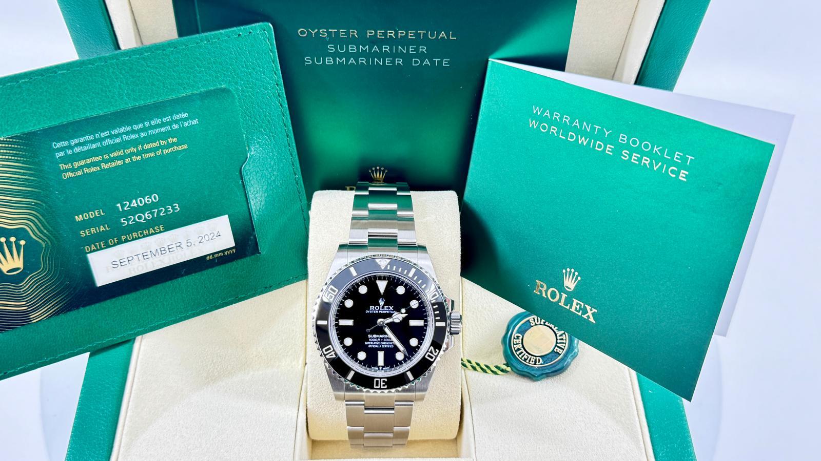 Marca Rolex Modello (Orologio) Submariner (No Date) Numero di referenza 124060 Carica Automatico Materiale della cassa Acciaio Materiale cinturino Acciaio Anno di produzione 2024 pari al nuovo documenti originali, no box la scatola utilizzata solo per fotografie non in vendita Carica Automatico Cassa Materiale della cassa Acciaio Diametro 41 mm Impermeabile 30 ATM Materiale lunetta Ceramica Vetro Vetro zaffiro Quadrante Nero Numeri sul quadrante Senza numeri Cinturino Materiale cinturino Acciaio Colore cinturino Acciaio Chiusura Déployante Materiale chiusura Acciaio