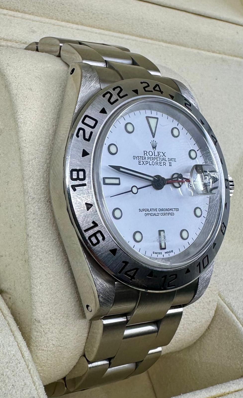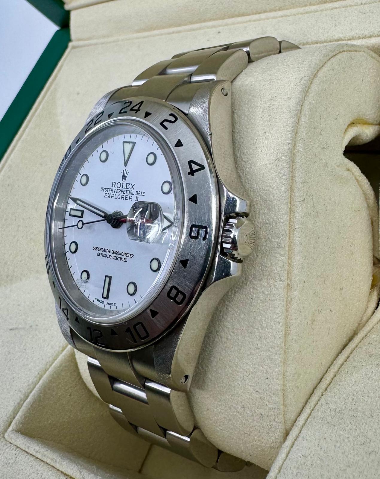 Marca Rolex Modello (Orologio) Explorer II Numero di referenza 16570 Carica Automatico Materiale della cassa Acciaio Materiale cinturino Acciaio Anni 2000 Condizione Usato (Ottimo) L'articolo presenta segni di usura lievi, come ad esempio graffi leggeri, ma non percepibili al tatto. documenti originali, no box Cassa Materiale della cassa Acciaio Diametro 40 mm Impermeabile 10 ATM Materiale lunetta Acciaio Vetro Vetro zaffiro Quadrante bianco Numeri sul quadrante Senza numeri Cinturino Materiale cinturino Acciaio Colore cinturino Acciaio Chiusura Déployante Materiale chiusura Acciaio