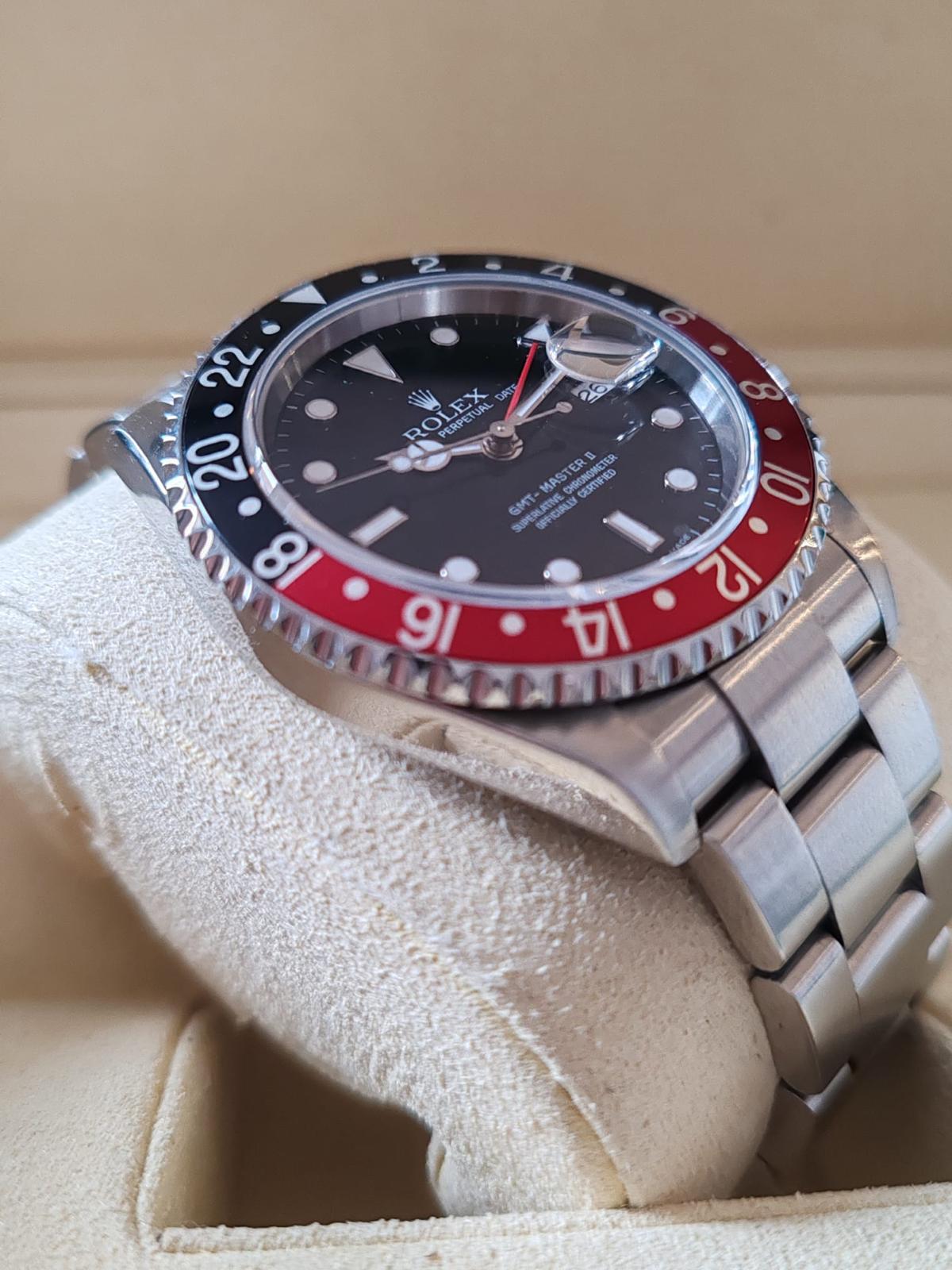 Marca Rolex Modello (Orologio) GMT-Master II Numero di referenza 16710 Carica Automatico Materiale della cassa Acciaio Materiale cinturino Acciaio Condizione Usato L'articolo presenta segni di usura lievi, come ad esempio graffi leggeri, ma non percepibili al tatto. no documenti originali Rolex, no box Carica Automatico Cassa Materiale della cassa Acciaio Diametro 40 mm Impermeabile 10 ATM Materiale lunetta Acciaio Vetro Vetro zaffiro Quadrante Nero Anno 2006/07 Numeri sul quadrante Senza numeri Cinturino Materiale cinturino Acciaio Colore cinturino Acciaio Chiusura Déployante Materiale chiusura Acciaio Funzioni Data, GMT