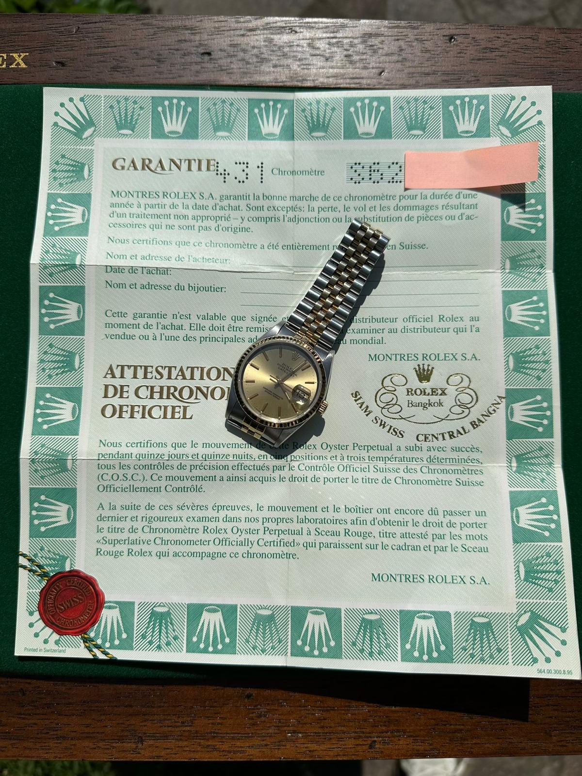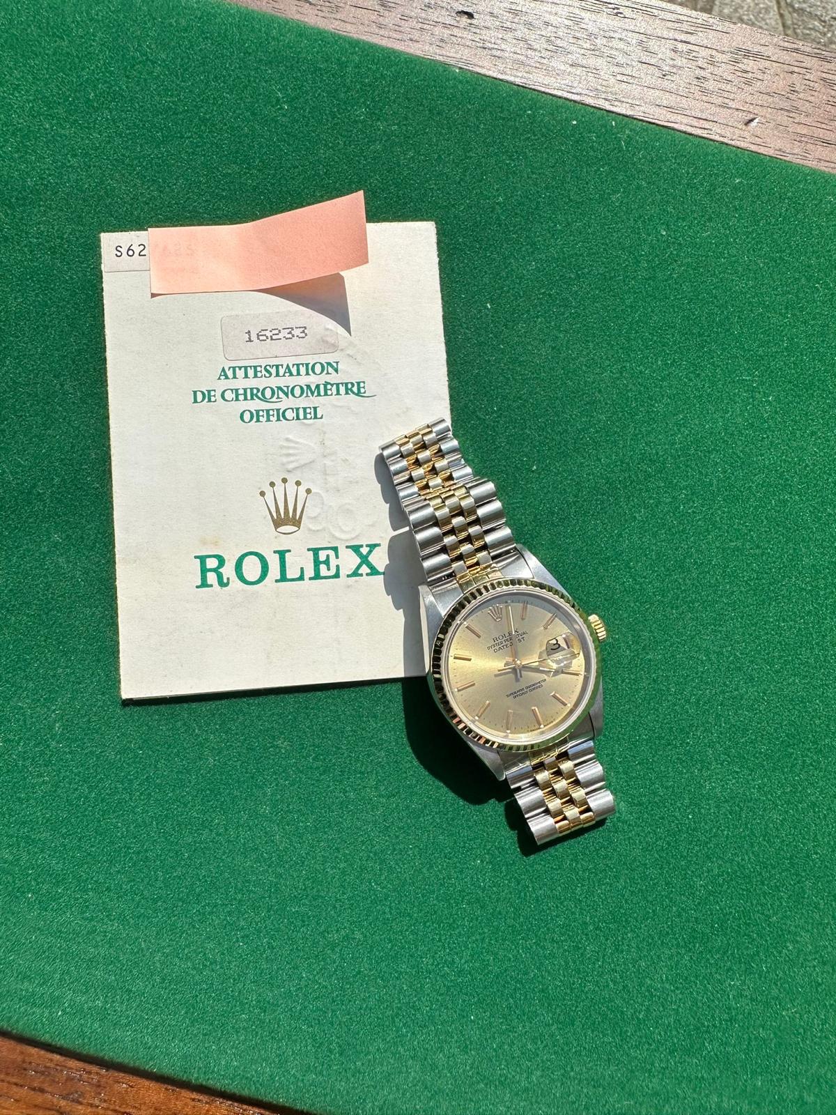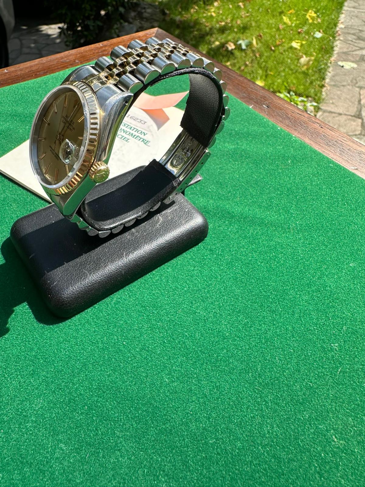 Marca Rolex Modello (Orologio) Datejust 36 Numero di referenza 16233 Carica Automatico Materiale della cassa Oro/Acciaio Materiale cinturino Oro/acciaio Anno di produzione 1995 (Anno approssimativo) Condizione Buono (segni di usura o graffi poco visibili o visibili) Corredo Senza scatola originale , con documenti originali Carica Automatico Materiale della cassa Oro/Acciaio Diametro 36 mm Impermeabile 10 ATM Materiale lunetta Oro giallo Vetro Vetro zaffiro Quadrante Champagne Numeri sul quadrante Senza numeri Cinturino Materiale cinturino Oro/acciaio Colore cinturino Oro/acciaio Chiusura Déployante Materiale chiusura Acciaio