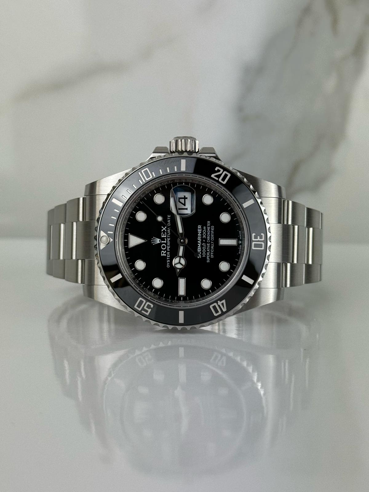 Marca Rolex Modello (Orologio) Submariner Date Numero di referenza 126610LN Carica Automatico Materiale della cassa Acciaio Materiale cinturino Acciaio Anno di produzione 2024 Condizione nuovo Con scatola originale e documenti originali Carica Automatico Materiale della cassa Acciaio Diametro 41 mm Impermeabile 30 ATM Materiale lunetta Ceramica Vetro Vetro zaffiro Quadrante Nero Numeri sul quadrante Senza numeri Cinturino Materiale cinturino Acciaio Colore cinturino Acciaio Chiusura Déployante Materiale chiusura Acciaio