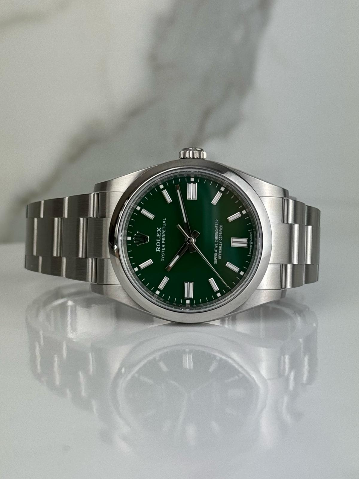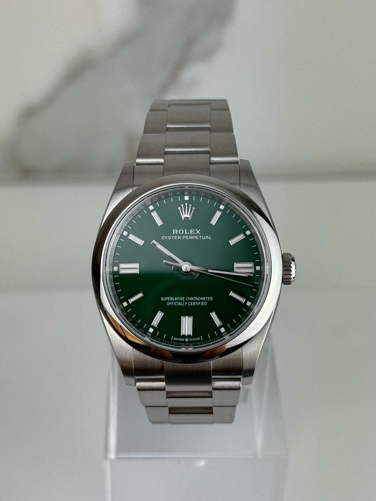 Marca Rolex Modello (Orologio) Oyster Perpetual 36 Numero di referenza 126000 Carica Automatico Materiale della cassa Acciaio Materiale cinturino Acciaio Anno di produzione 2024 Condizione nuovo Corredo Con scatola originale e documenti originali Carica Automatico Materiale della cassa Acciaio Diametro 36 mm Impermeabile 10 ATM Materiale lunetta Acciaio Vetro Vetro zaffiro Quadrante Verde Numeri sul quadrante Senza numeri Cinturino Materiale cinturino Acciaio Colore cinturino Acciaio Chiusura Déployante Materiale chiusura Acciaio