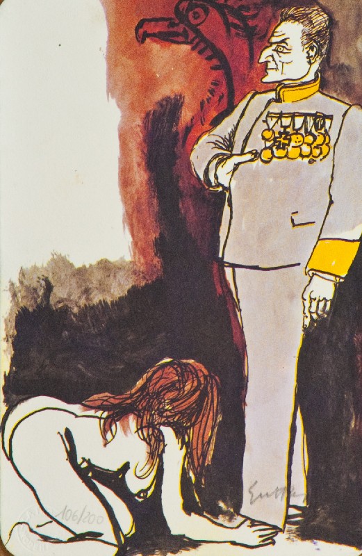 Renato Guttuso (Bagheria (Pa) 1912 - Roma 1987) LOTTO UNICO DI DUE OPERE -"I tarocchi", Fotolitografia su cartoncino, cm. 18,5x12, es. 106/200, firma e timbro a secco dell'Artista in basso a destra, tiratura e timbro a secco "La Traccia - Modena", in basso a sinistra; "i tarocchi", Fotolitografa su cartoncino, cm. 18,5x12, es. 106/200, firma e timbro a secco dell'Artista in basso a destra, tiratura e timbro a secco "La Traccia - Modena", in basso a sinistra.