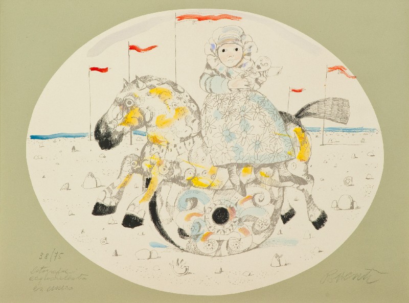 Antonio Possenti (Lucca 1933) SENZA TITOLO Litografia colorata a mano su carta, cm. 45x60, es. 38/75 Firma in basso a destra, tiratura in basso a sinistra.