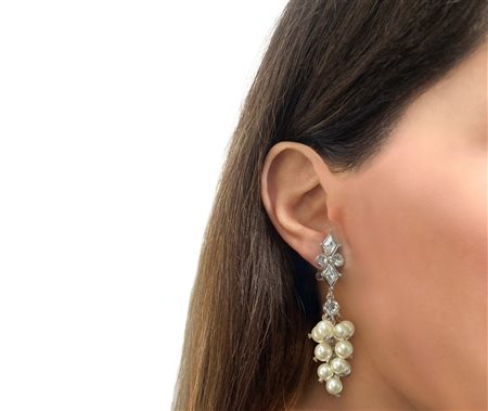 Christian Dior - Orecchini pendenti a clip Dior con cristalli a lobo e perle pendenti cm 3 Timbro sul retro Christian Dior BoutiqueTimbro sul retro Christian Dior Boutique