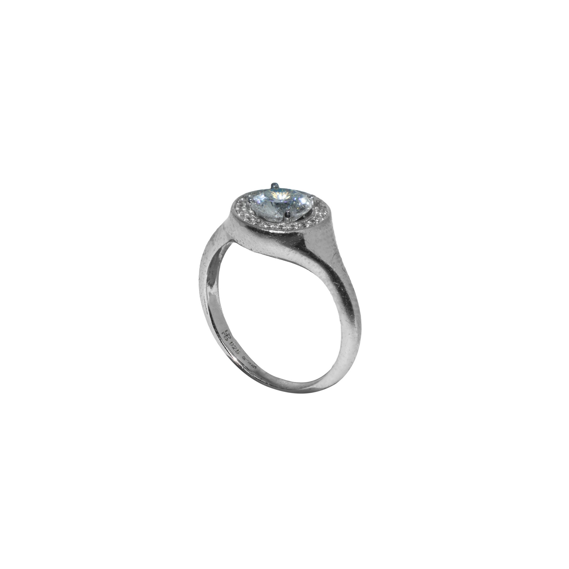 Anello in argento con pietra sintetica centrale circolare circondato da in cerchio di zirconi