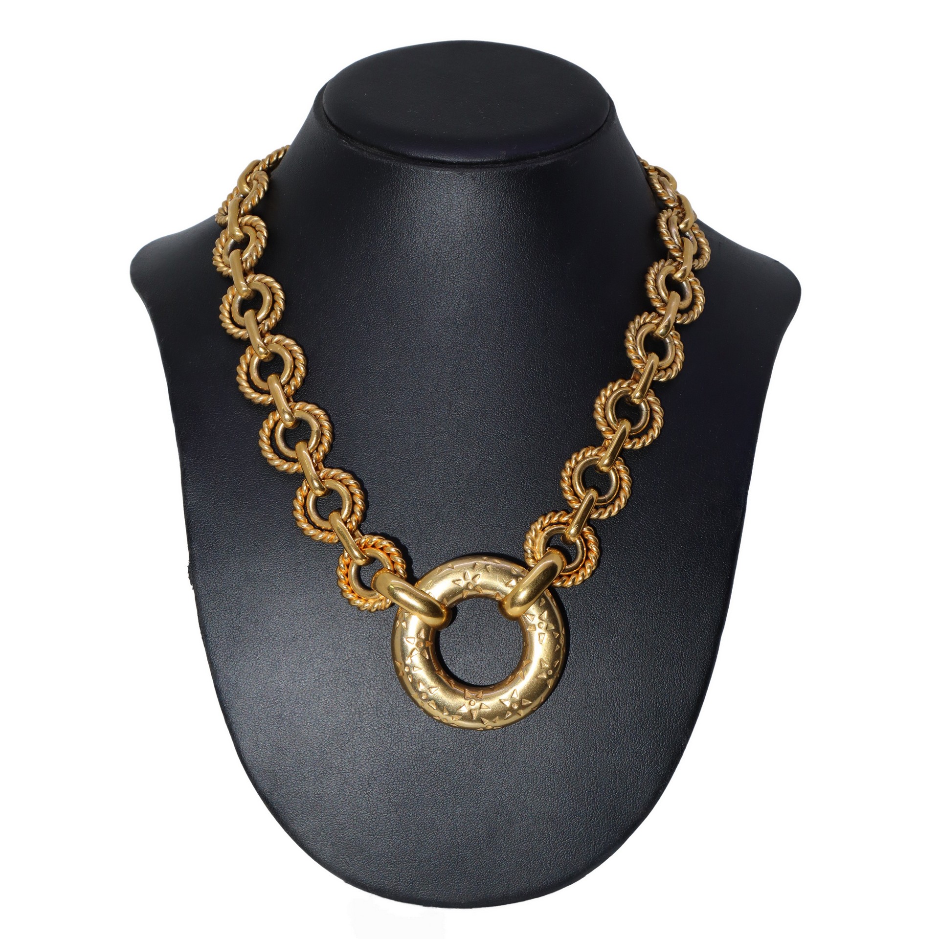 Collana catena dorata a con medaglione rotondo con stelline incise