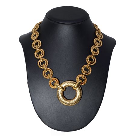 Collana catena dorata a con medaglione rotondo con stelline incise cm 55