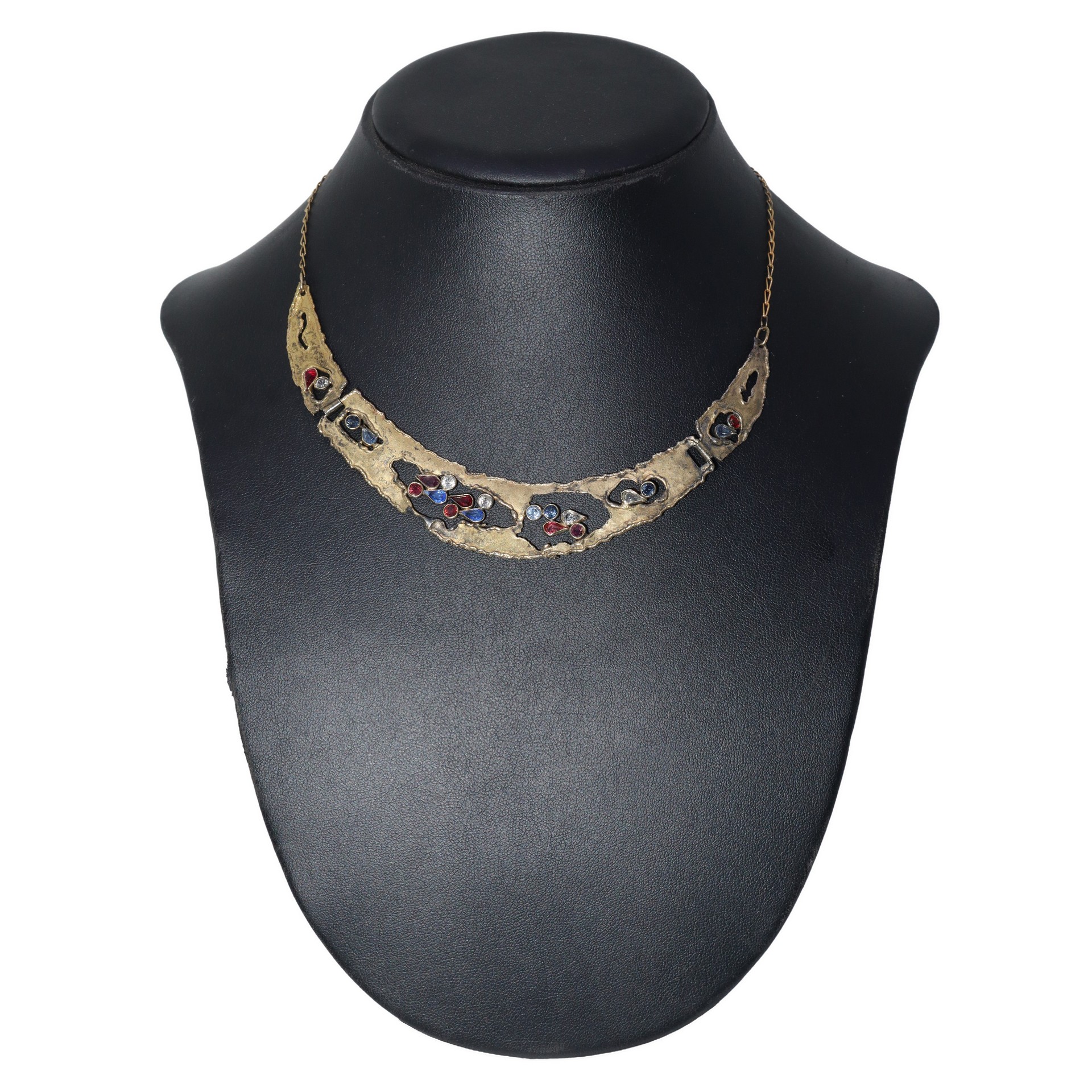 Collana in argento 925 semirigida in metallo dorato con pietre colorate
