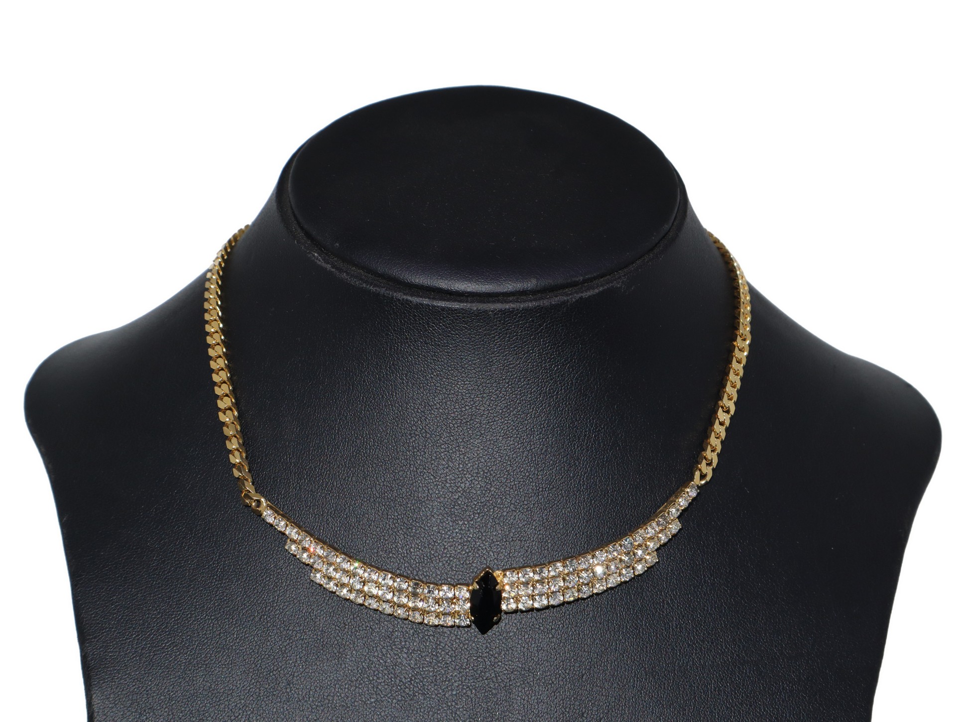 Girocollo con strass e pietra nera Girocollo Circa 45 cm