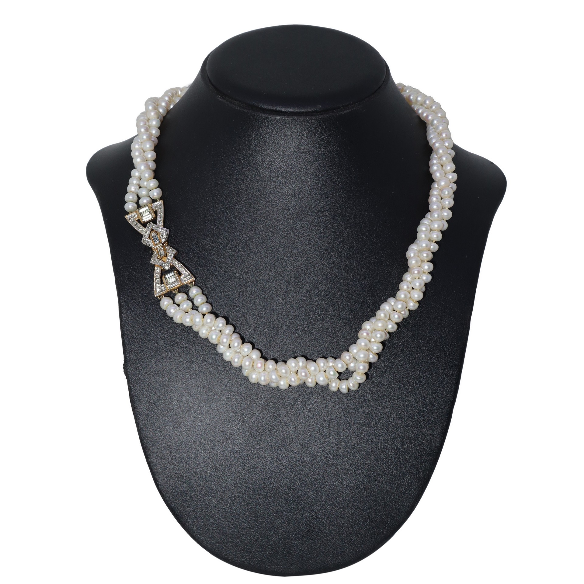 Collana a 3 fili di perle con susta con strass Lunghezza cm 60