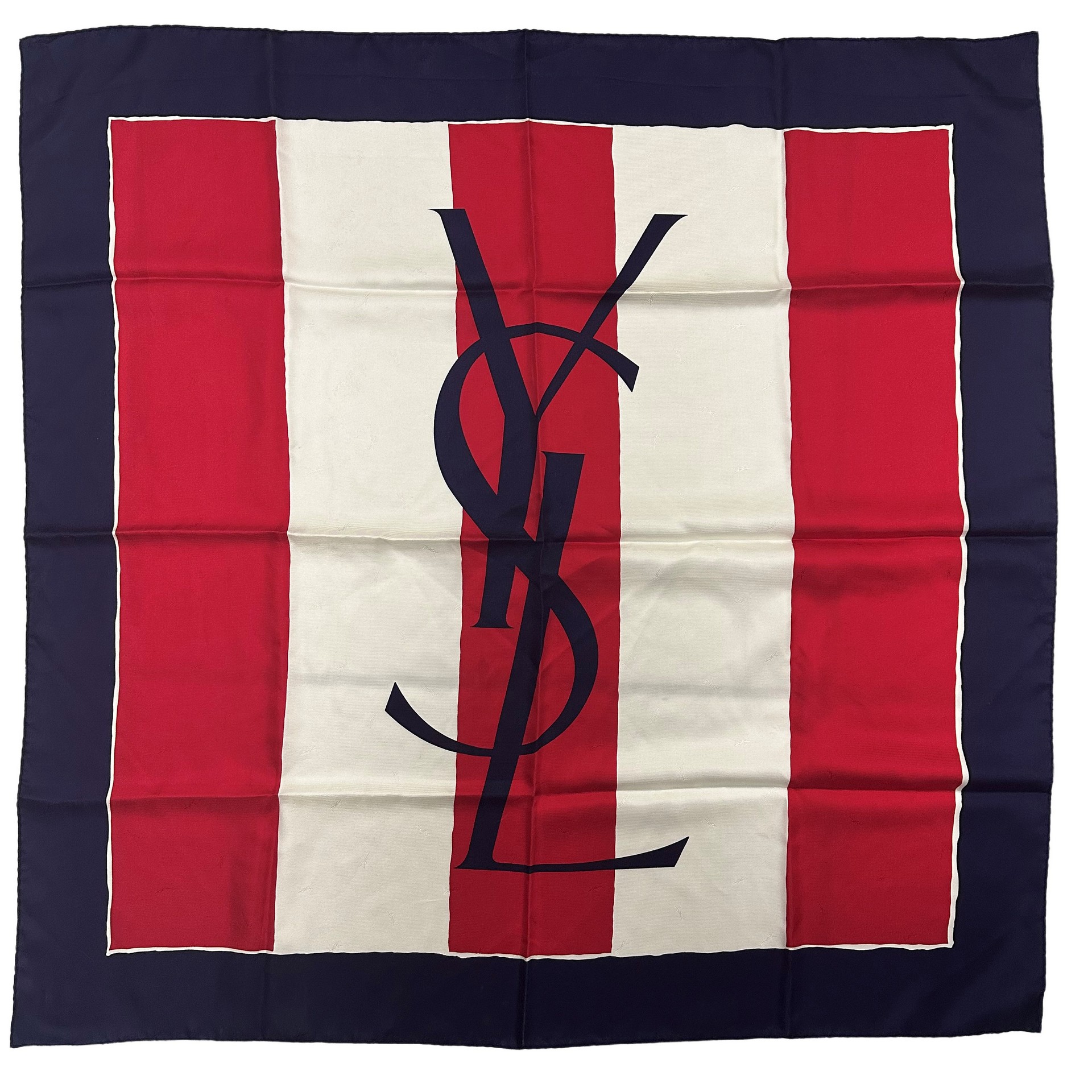 Yves Saint Laurent (1962) - Foulard in seta con grande iconico logo centrale cm 89X89 Tessuto completamente logato in trasparenza.Tessuto completamente logato in trasparenza.