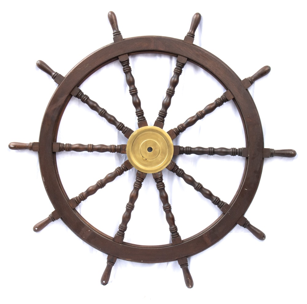 cm 115 diametro Timone navale a dieci raggi; parte centrale in ottone. Ottime condizioni.