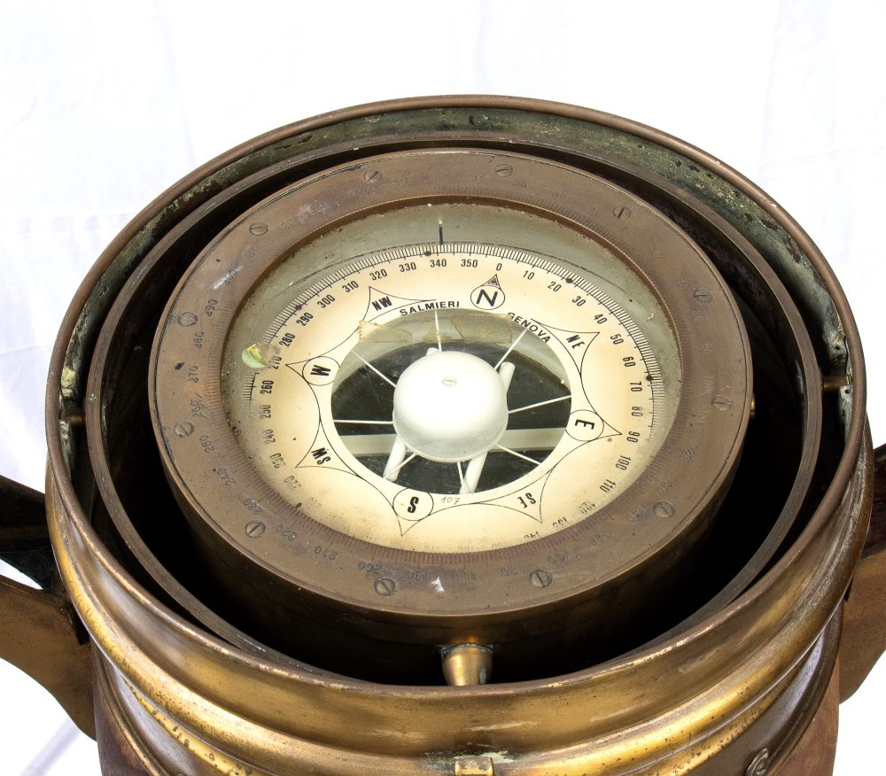 h 150 cm ca. Chiesuola con bussola in legno e ottone della ditta Salmieri Genova. Marcato sul fronte W. Ludolph, Bremeraven. Buone condizioni.