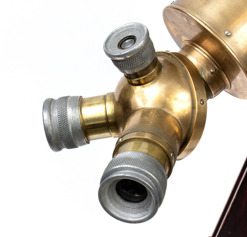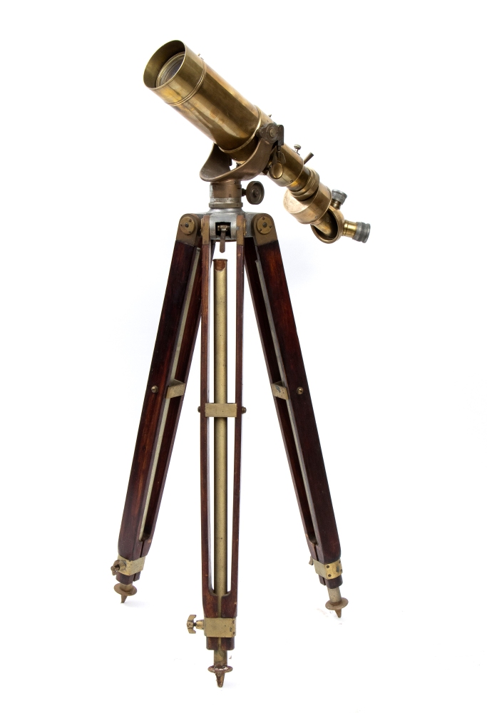 cm 62 Provvisto di tre lenti regolabili; Ottime condizioni, lunghezza del cannocchiale chiuso circa cm.62; diametro dell'ottica cm 10; altezza minima del treppiedi regolabile cm 90. Marcato R. LAB, Roma 1918.