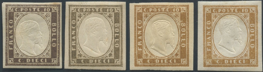 1858 - 10 centesimi, quattro ottimi valori in altrettante diverse tonalità nuovi con gomma originale, MH. (A/A+)