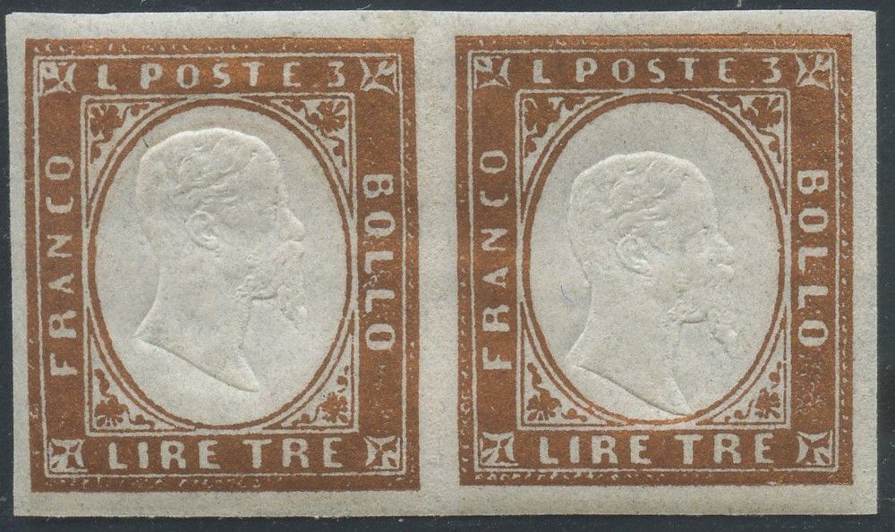 1861 - 3 lire rame vivo n.18A in splendida coppia nuova con gomma originale, MH. Cat. 1.400++. (A+) (Alberto Diena)