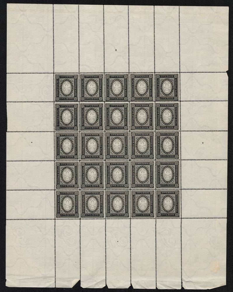 Impero Russo - 3,5r. Nero in foglio completo di 25 esemplari